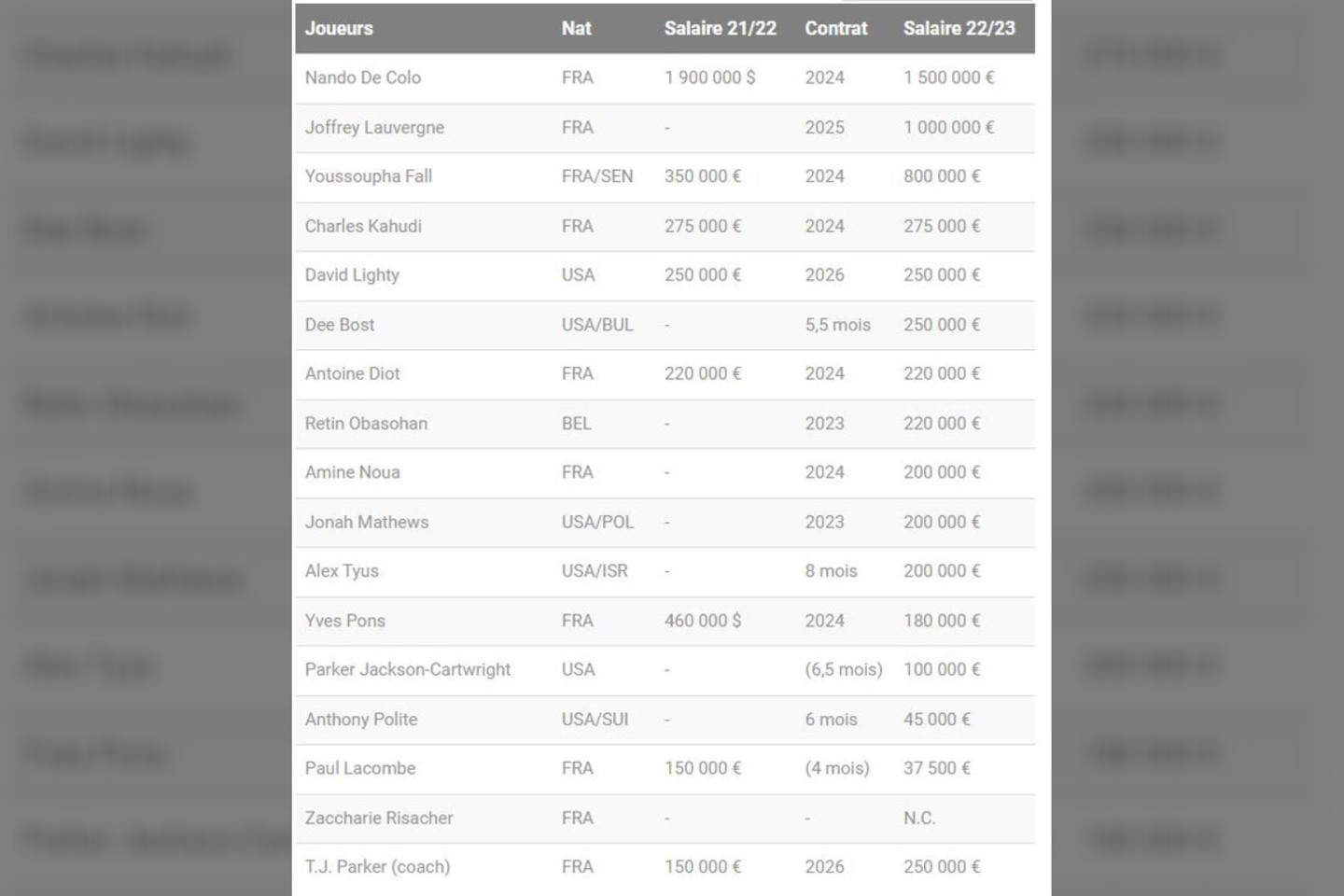 ASVEL komandoje brangiausiai apmokamas 35-erių Nando De Colo. Prancūzas šį sezoną gaus 1,5 mln. eurų.