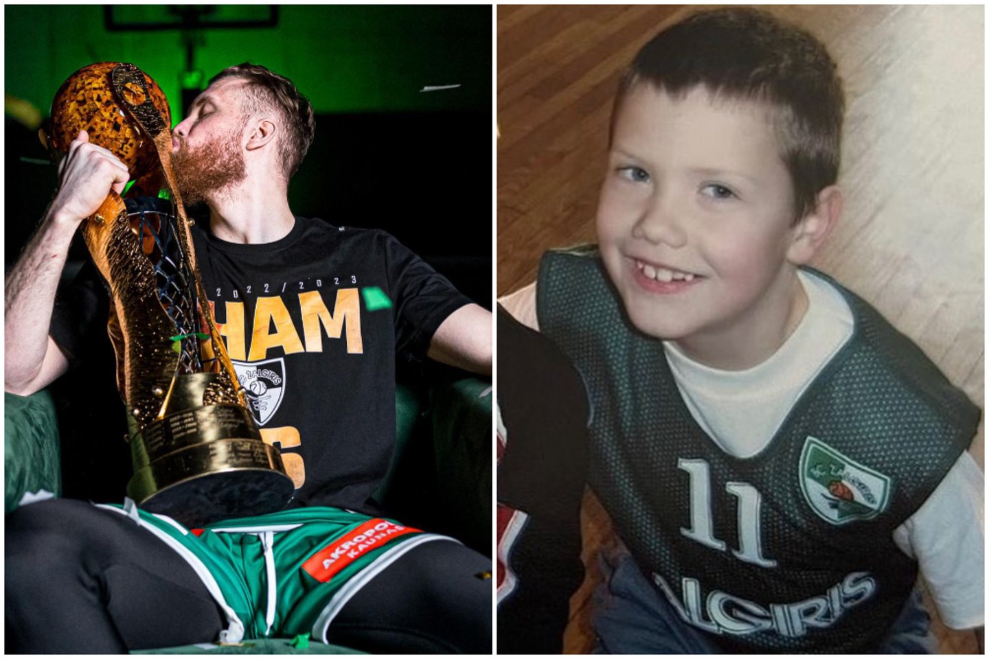 Antradienį „Žalgirio“ ekipa savo instagrame pasidalino jautria krepšininko vaikystės nuotrauka, kurioje jis šypsosi dėvėdamas legendinio Arvydo Sabonio marškinėlius.