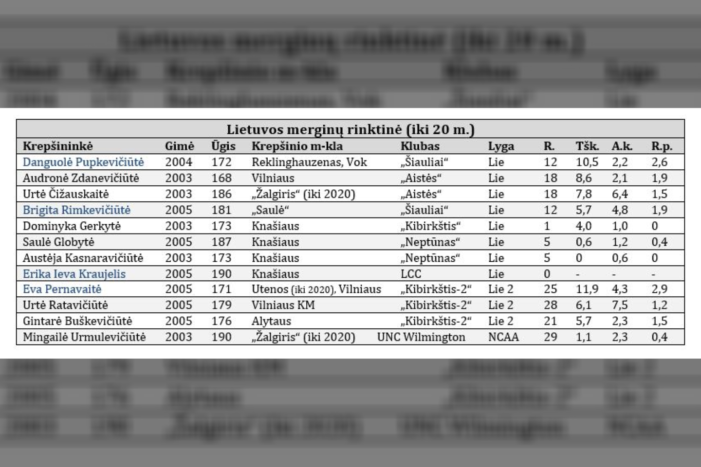 Rinktinės sąraše yra ir viena krepšininkė, rungtyniavusi JAV Nacionalinės koledžų sporto asociacijos (NCAA) pirmenybėse. Mingailė Urmulevičiūtė praėjusį sezoną gynė Šiaurės Karolinos-Vilmingtono universiteto garbę.