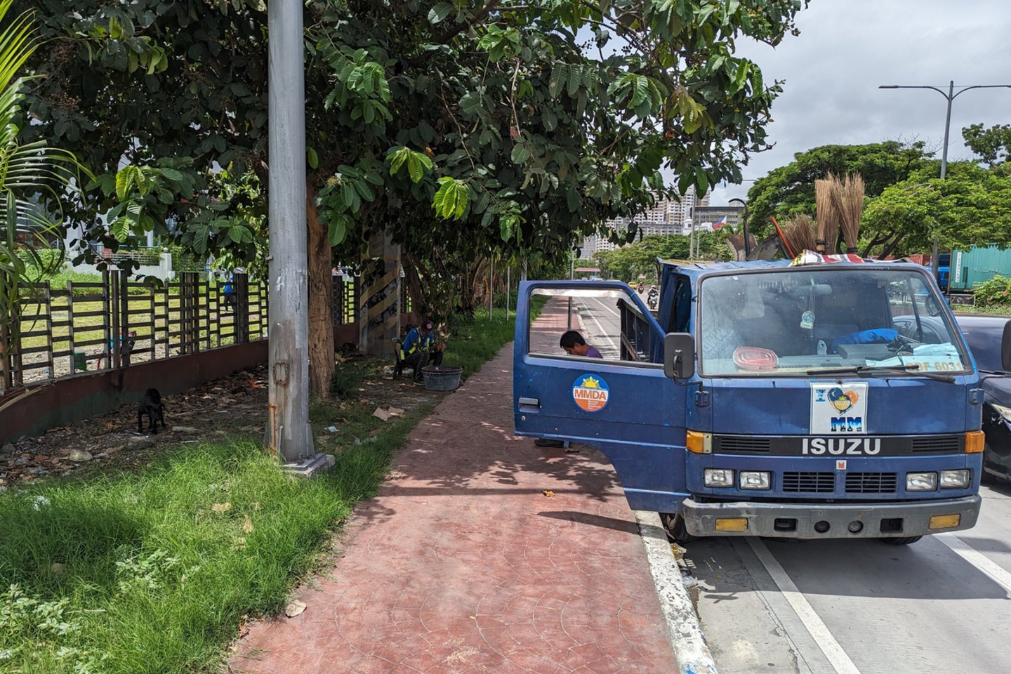 Netrukus – vėl kitas gyvenimo sluoksnis: tiesiog patvoriuose miegantys žmonės, pasislėpę po medžių metamu šešėliu. Vieni pasikabinę hamakus, kiti guli ant kartoninių dėžių ar užklotų. Kas miega, kas gamina kažkokį valgį, šalia vaikštinėja šunys, žaidžia vaikai. Iš vienos pusės – pro šalį skriejantys automobiliai, autobusai ir motoroleriai. Kitos – kanalas su daug daugiau šiukšlių.