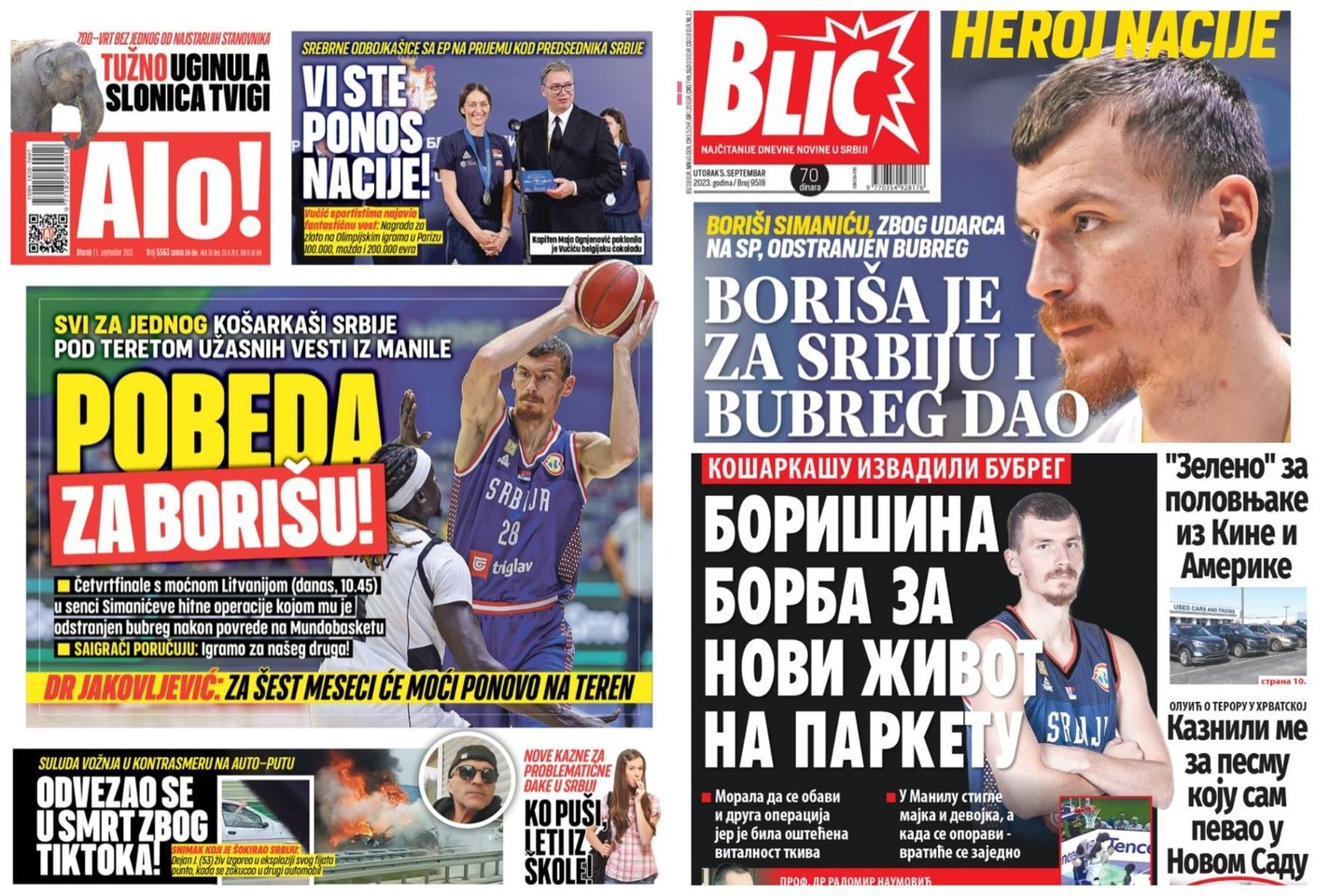 „Tautos didvyris. Boriša už Serbiją atidavė inkstą“, – viršelyje parašė „Blic“ dienraštis. „Reikia laimėti dėl Borišos! Visi už vieną. Serbijos krepšininkai prislėgti siaubingos naujienos“, – pirmajame puslapyje rašė kitas dienraštis „Alo“.