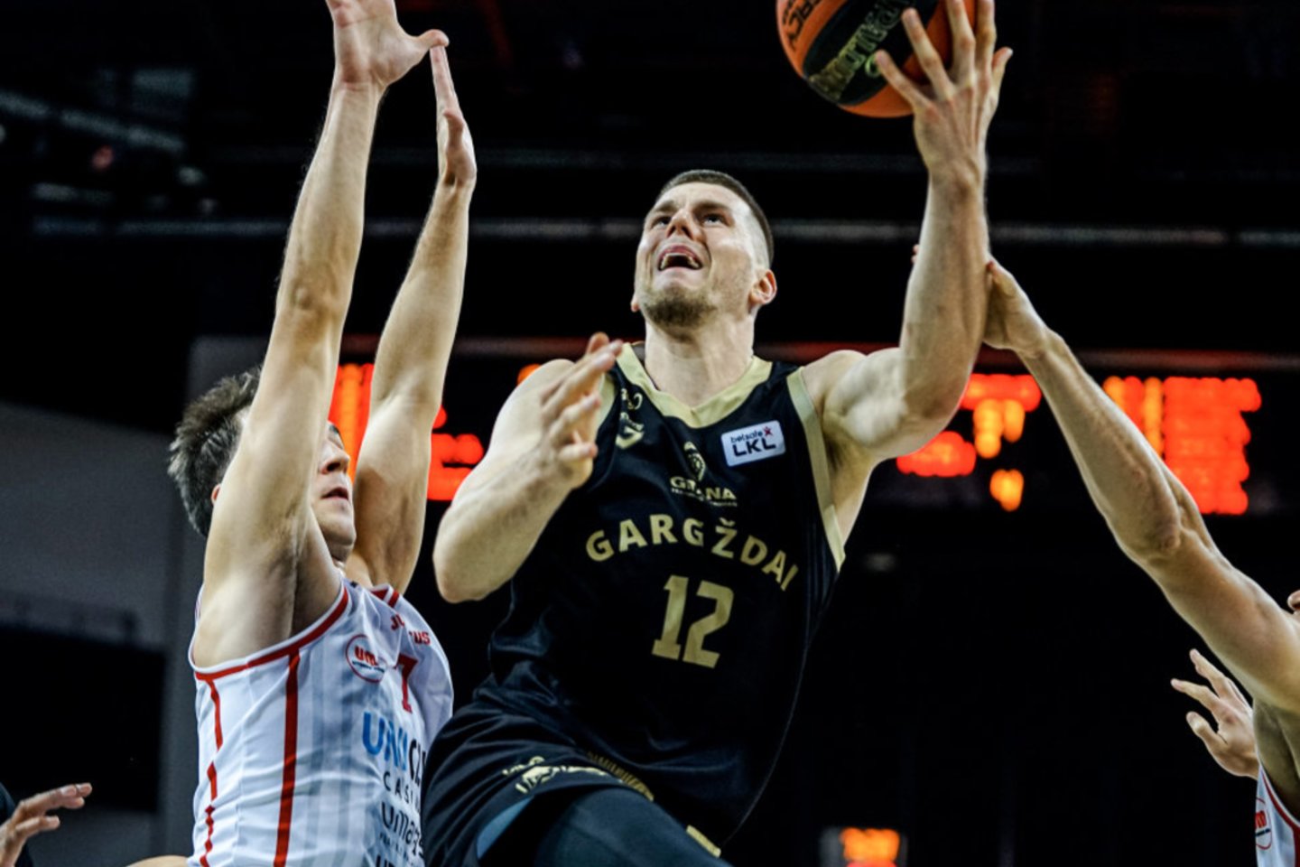 Komandos startavo lygiai, o besibaigiant pirmajam kėliniui „status quo“ atstatė Armandas Urkis – 16:16. Gargždiškiai pirmieji surengė solidesnį spurtą ir ir Boriso Mbalos metimu atitrūko 30:22. Uteniškiai su tuo nesusitaikė, tačiau rezultato persverti jiems neleido Ernesto Jonkaus ir Aurimo Majausko tritaškiai (43:36).