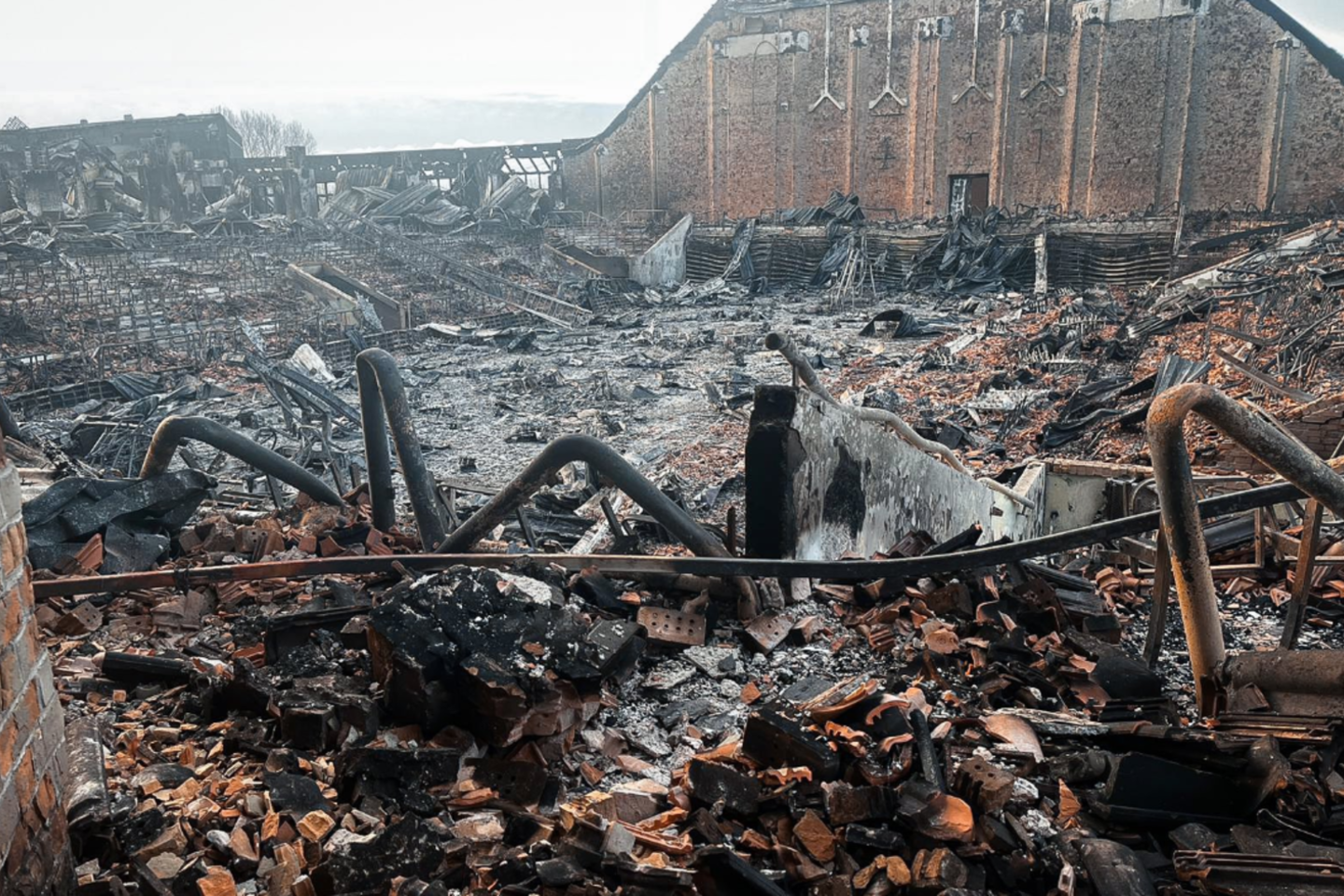 Praėjus dienai po tragiškos žinios Gravelino miesto klubas pasidalino nuotrauka, kai dabar atrodo ugnies sunaikinta arena.