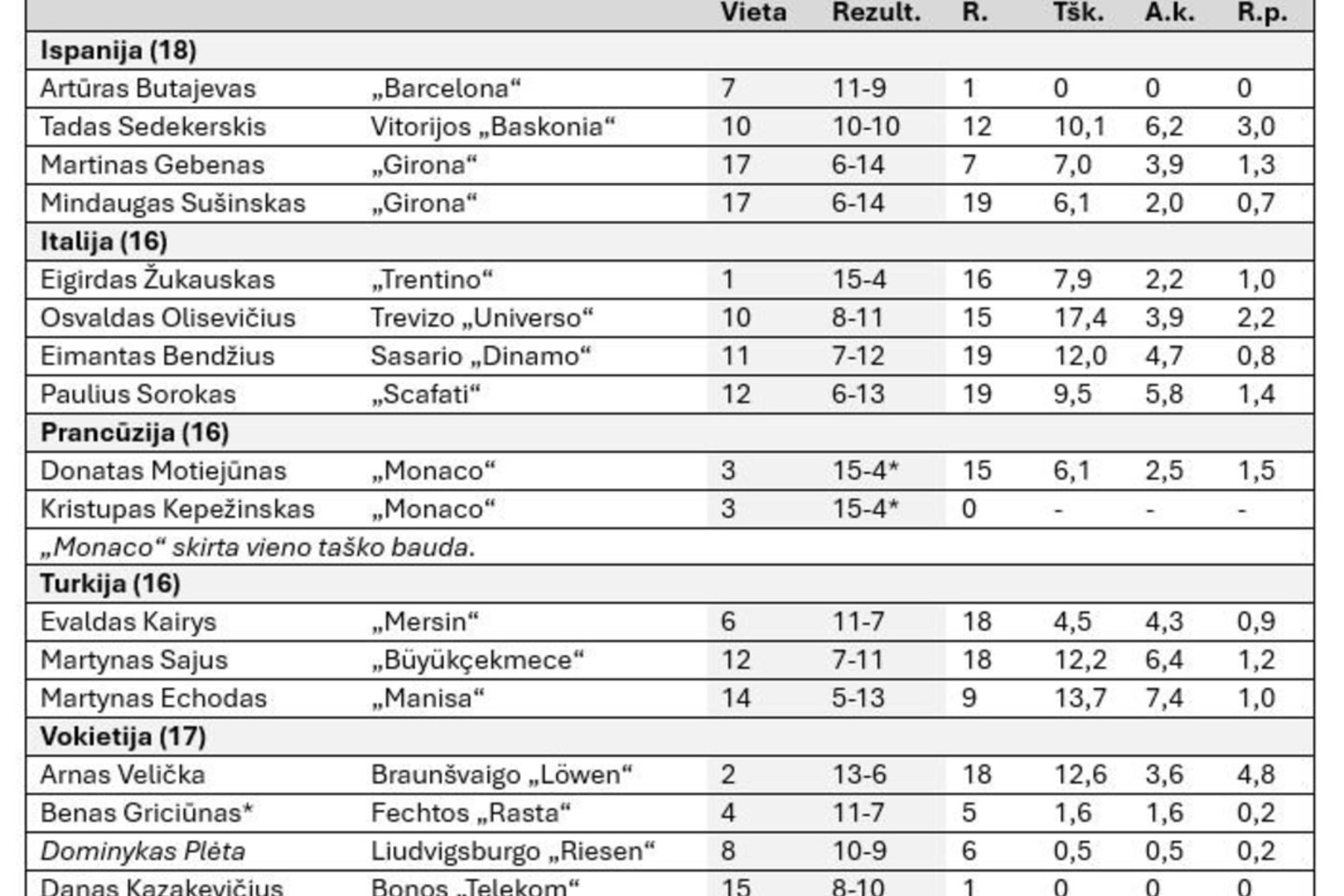 Daugelyje nacionalinių lygų prasidėjus pertraukai apžvelgiame, ką šie ir kiti Lietuvos krepšininkai iki vasario vidurio nuveikė kitų Europos šalių pirmenybėse.