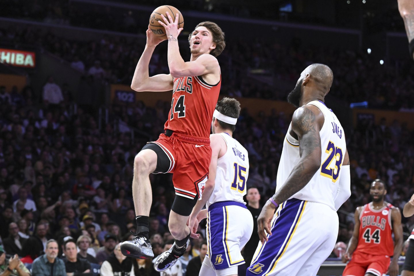 Matas Buzelis per 30 minučių aikštelėje į „Lakers“ krepšį suleido net 31 tašką (7/8 dvit., 5/10 trit., 2/2 baud.) ir sugriebė 2 atšokusius kamuolius. Puolėjas per pirmąją mačo dalį pelnė 10 taškų, o per antrąją net 21 tašką.