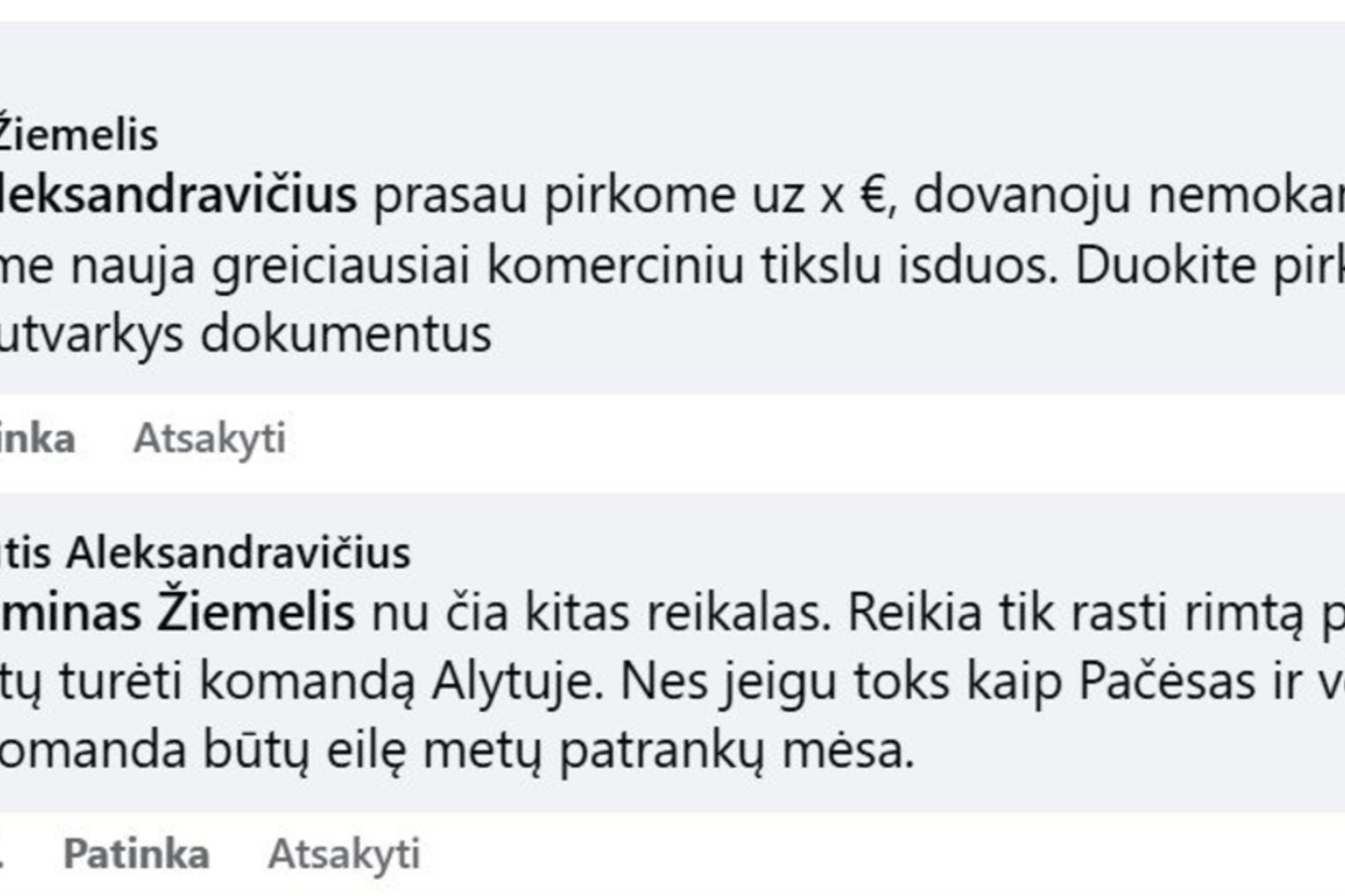 „Gediminai grąžink Alytui šio klubo LKL licenciją, tegul gyvuoja Alytui krepšinis. Aišku jeigu tik atsirastų rimti žmonės, kurie norėtų turėti Alytuje komandą. Kam tau šis žaisliukas?“, – parašė galimai alytiškis.