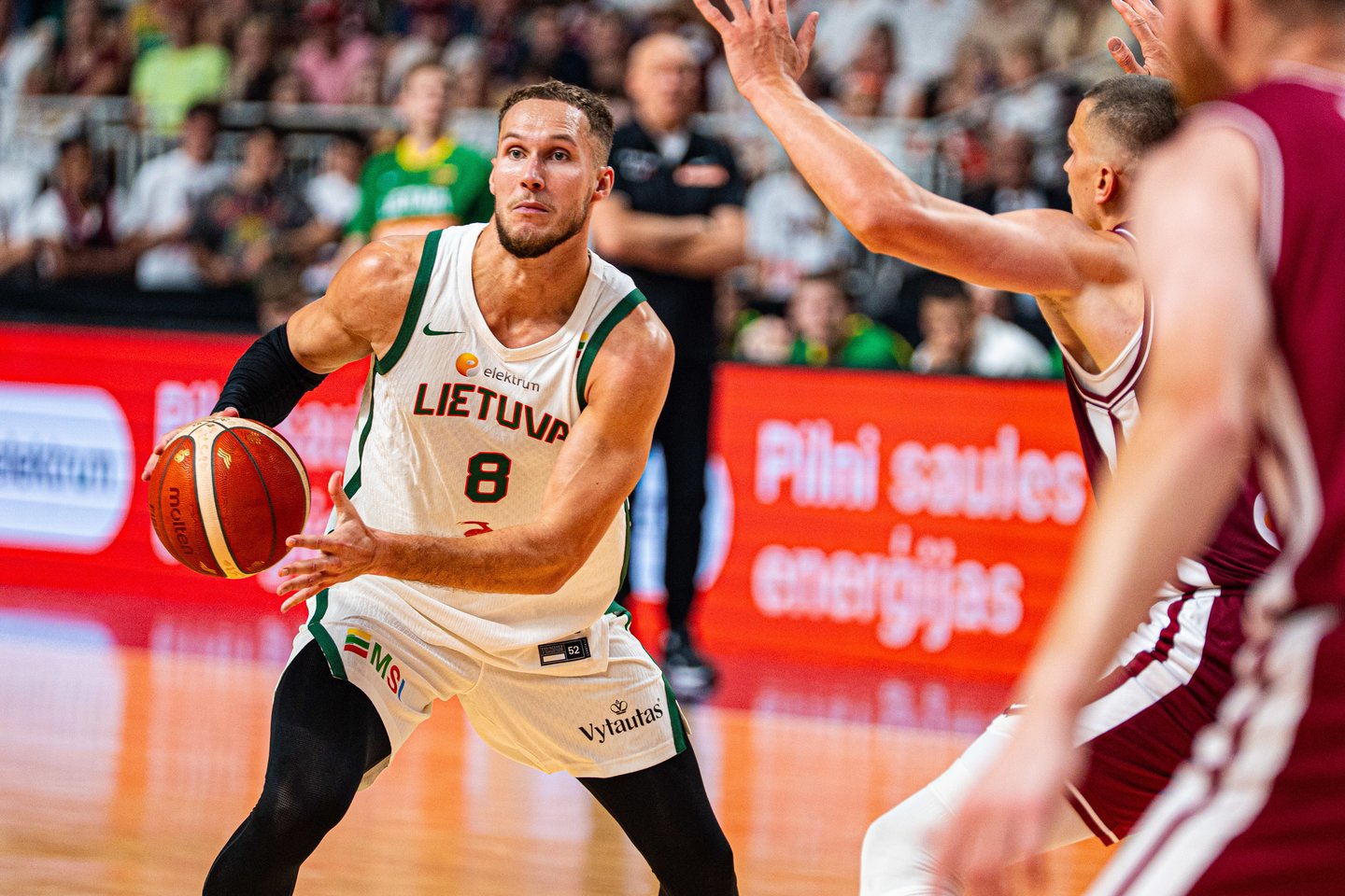 „Po truputį priprantame, galbūt ir tas jaudulys – pirmos rungtynės. Tikiuosi, kad bus geriau penktadienį“, – geresnio taiklumo penktadienio mače laukė Lietuvos rinktinės puolėjas.