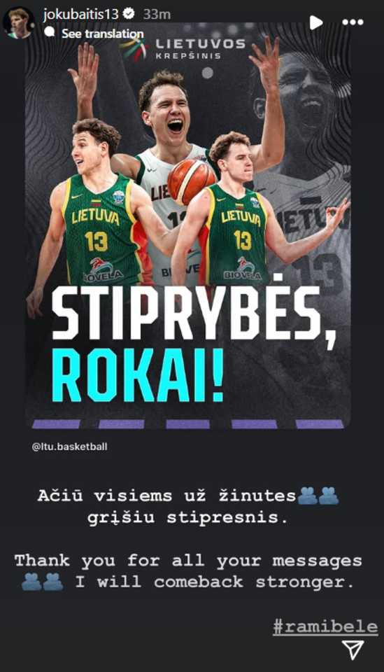 „Ačiū visiems už žinutes. Grįšiu stipresnis“, – rašė 24-erių įžaidėjas.