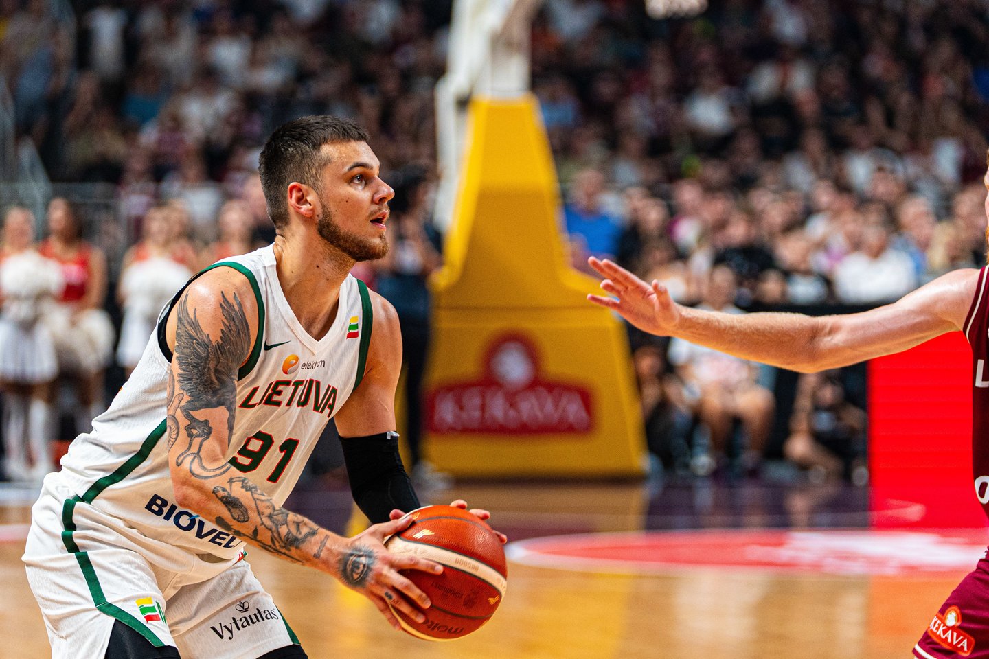 Rimo Kurtinaičio treniruojami lietuviai stos į principinę aštuntfinalio akistatą su gausiai savų sirgalių palaikoma Latvijos rinktine.