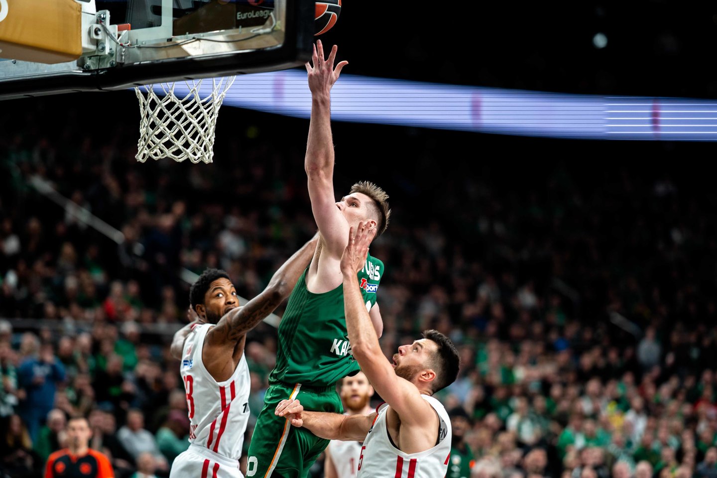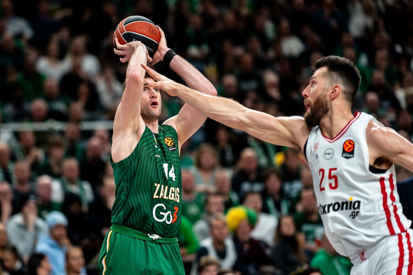 Kauno „Žalgirio“ krepšininkai tęsią įspūdingą pasirodymą Eurolygoje, o šįkart trečiadienį Tomo Masiulio auklėtiniai namuose 99:94 po dviejų pratęsimų įveikė Pirėjo „Olympiakos“. Turėdami 17 pergalių ir 12 pralaimėjimų kauniečiai užima 6-ąją vietą Eurolygoje. Geriausiomis trečiadienio rungtynių akimirkomis siūlome pasigrožėti Lrytas fotogalerijoje.