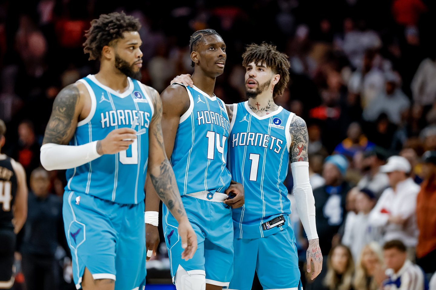 „Hornets“: Konas Knueppelas 20 (3/6 dvit., 4/8 trit., 4 atk. kam.), LaMelo Ballas (3/7 dvit., 4/10 trit.) ir Brandonas Milleris po 18, Coby White'as 17 (4/6 dvit., 6 rez. perd.).