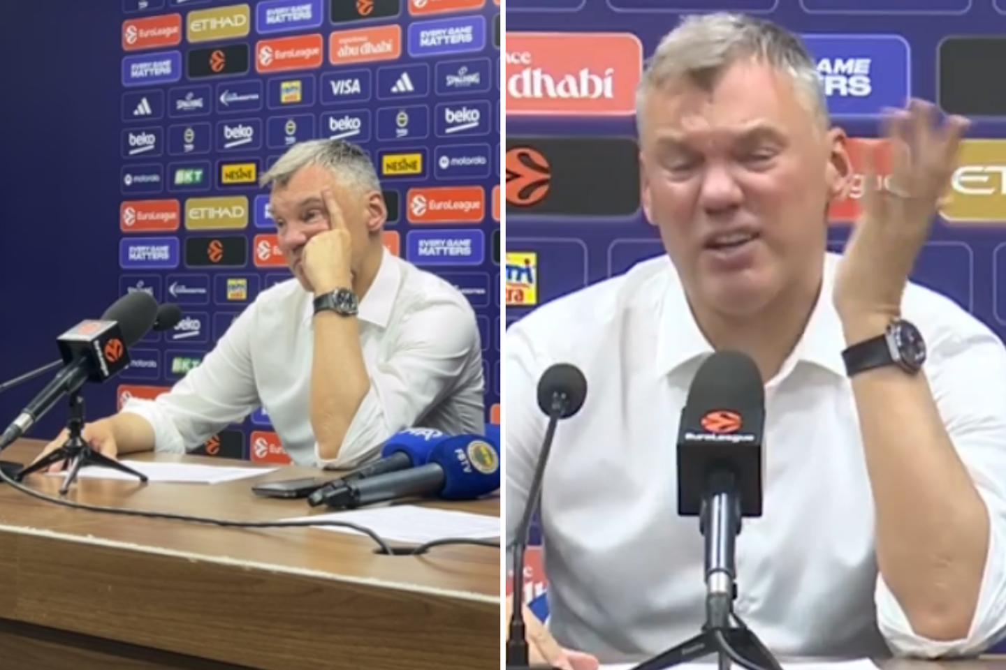 Po įžanginio lietuvio komentaro apie rungtynes, Turkijos žurnalistas pradėjo formuoti klausimą, tačiau tai darė gana lėtai ir neužtikrintai. Netrukus Šaras jį pertraukė ir rėžė komentarą.