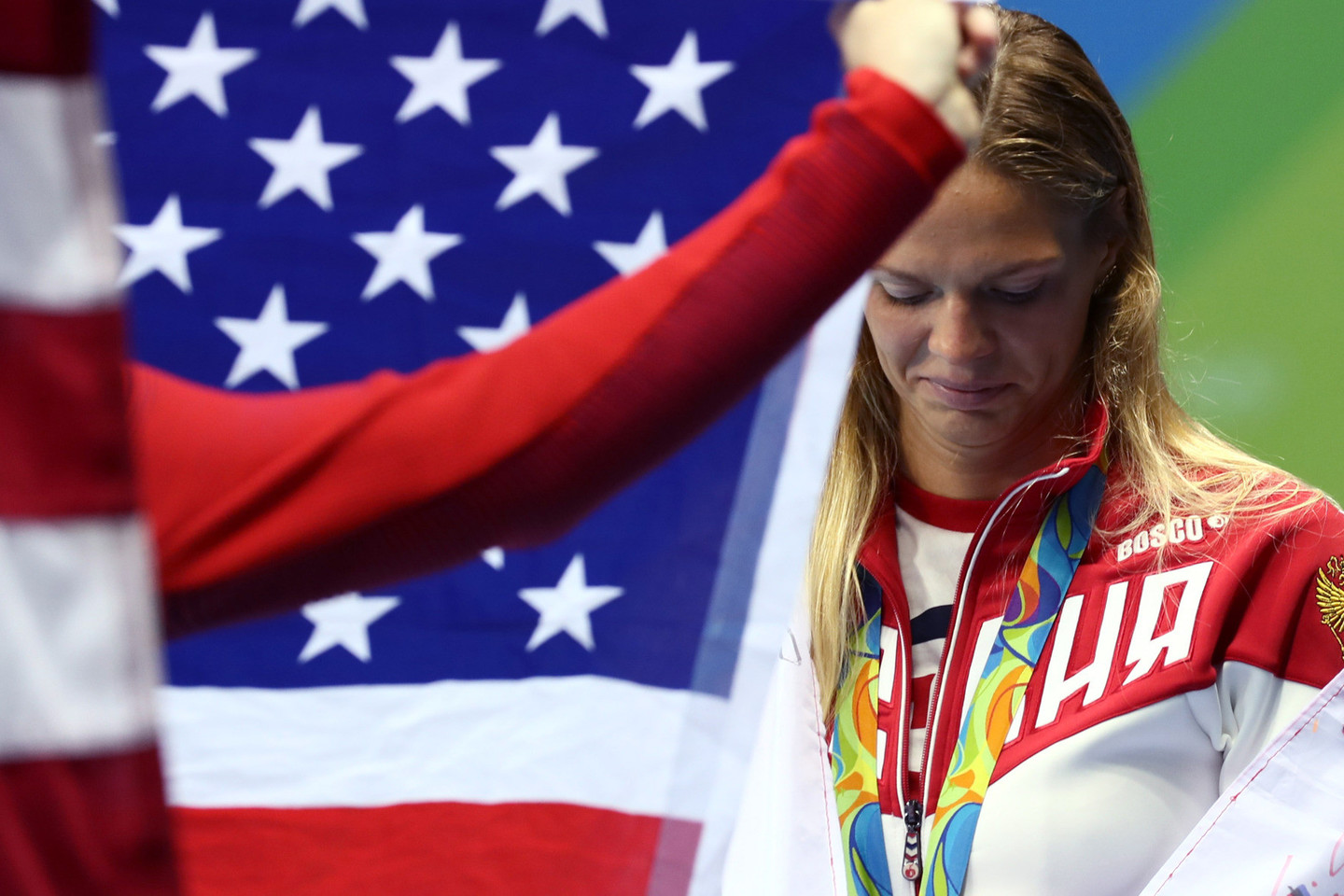 Ant jos kaklo kabojo sidabro medalis, bet jis negalėjo atmušti klausimų, lėkusių į Rusijos plaukikę po 100 m krūtine finalo Rio de Žaneiro plaukimo baseine.
