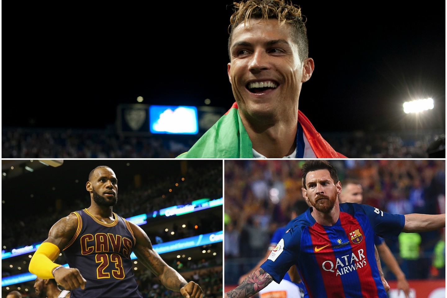 Kaip ir praėjusiais, taip ir šiais metais, pirmoje vietoje yra šiltai įsitaisęs Madrido „Real“ ekipos futbolininkas Cristiano Ronaldo. Taip pat savo pozicijas tose pačiose vietose išlaikė ir „Cleveland Cavaliers“ ekipos krepšininkas LeBronas Jamesas, kuris yra antras ir trečioje vietoje esantis „Barcelona“ ekipos futbolininkas Lionelis Messi.