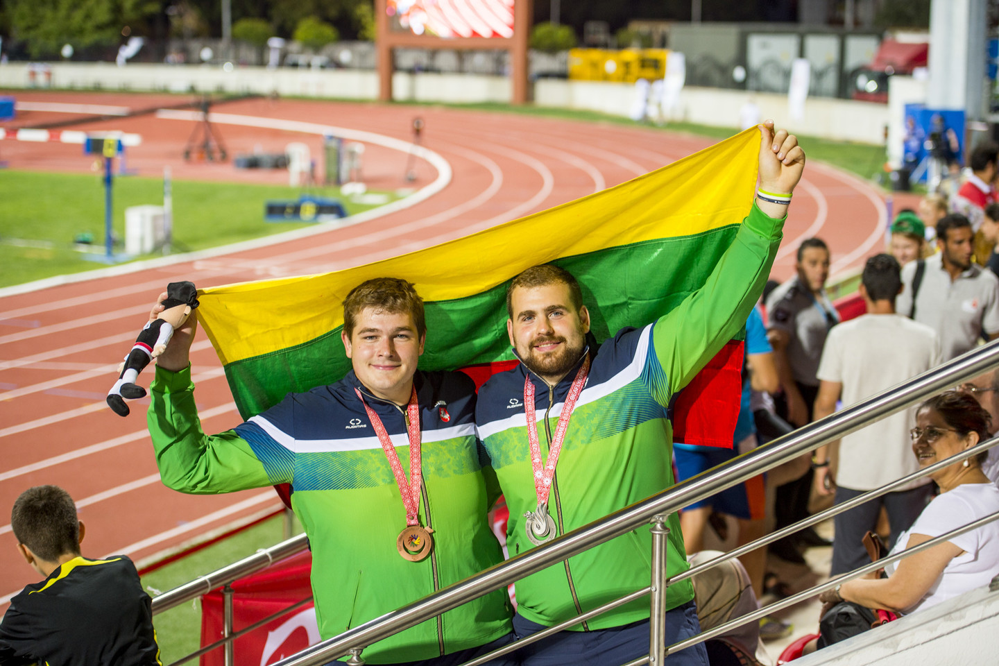 Samsune (Turkija) vykstančių kurčiųjų olimpinių žaidynių lengvosios atletikos varžybų vyrų rutulio stūmimo varžybose Lietuvos sportininkai iškovojo du medalius.
