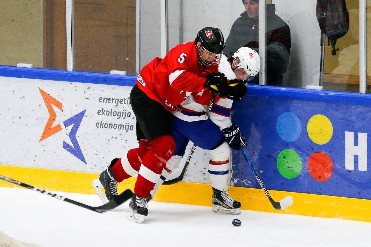 Būtent vartų sargui Elviui Karlai teko milžiniškas krūvis atlaikyti norvegų smūgius, kurių gretose yra vos vienas žaidėjas su „grotomis“ – ledo ritulyje iki 18 metų amžiaus privaloma žaisti su veidą dengiančiomis metalinėmis grotelėmis.