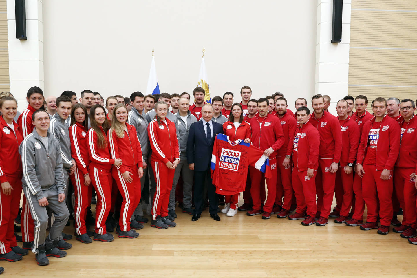 „Norėčiau jums palinkėti, kad nesikoncentruotumėtės į tai, kas vyko pasirengimo Pjongčango žaidynėms metu. Ir net negalvotumėte apie tai, ką jums sakiau prieš tai. Visas dėmesys turi būti kovai žaidynėse. Neužmirškite, kad jus stebi šimtai tūkstančių, milijonai jūsų sirgalių, kurie jus myli bei linki pergalių“, – savo kalba baigė Rusijos prezidentas.
