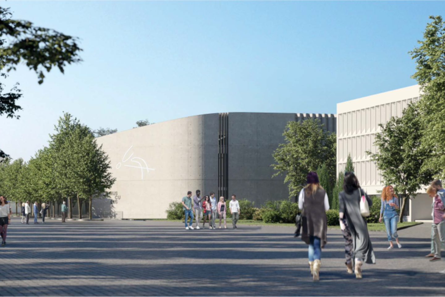 Į Šlovės alėjos ir stadiono pusę suprojektuotas atviras stiklo vitrinų fasadas atspindės čia augančias liepas. Pastato aplinkoje bus išsaugomi visi vertingi medžiai. Pasak architektų, monolitiška, plastiška betoninė pastato forma – aliuzija į bėgimo takelį.