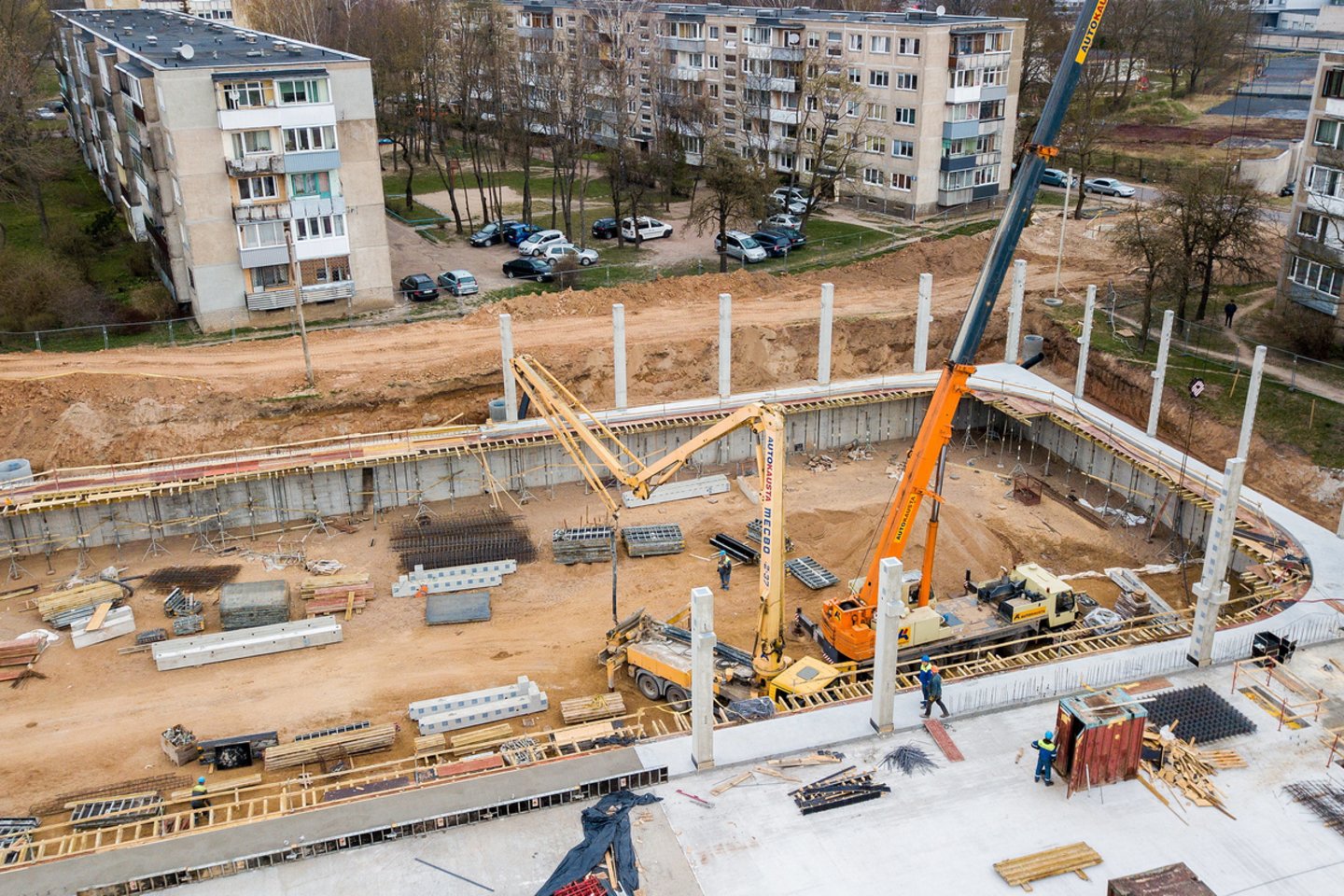 „Šiai dienai sunaudota daugiau kaip 3 tūkst. kubinių metrų betono, statybvietėje darbuojasi 70 darbininkų. Džiaugiamės, kad betonavimo etapas po truputį juda į pabaigą ir dabar pradėjome montuoti stogo konstrukciją laikysiančias kolonas, taip pat įrenginėjame tribūnų gelžbetonines monolitines konstrukcijas“ , – vykstančius darbus detalizavo bendrovės „Autokausta“ projekto vadovas Audrius Pakėnas.