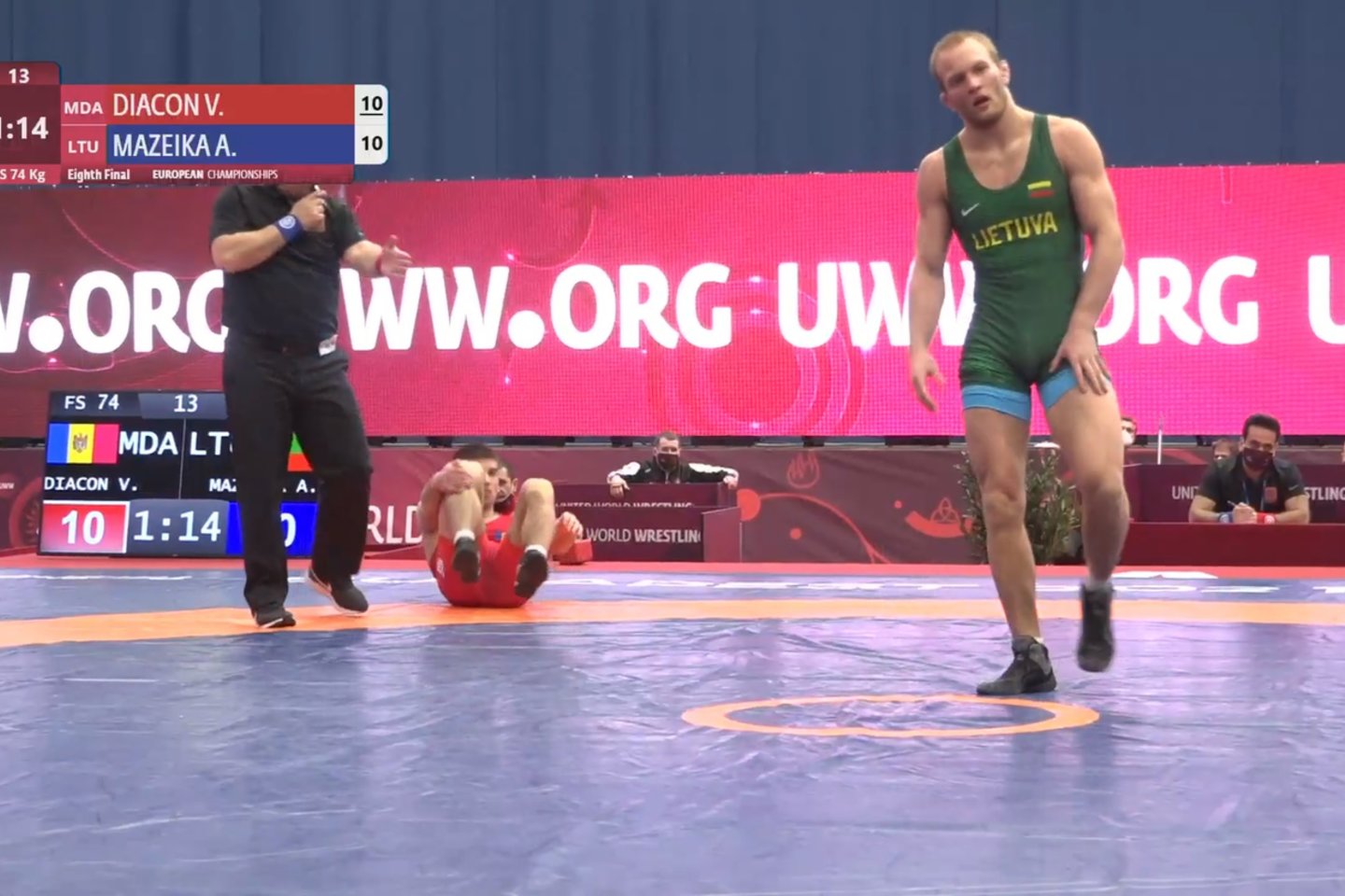 74 kg; 1/8 finalo Andrius Mažeika – Vasile Diacon (MDA) 22:10