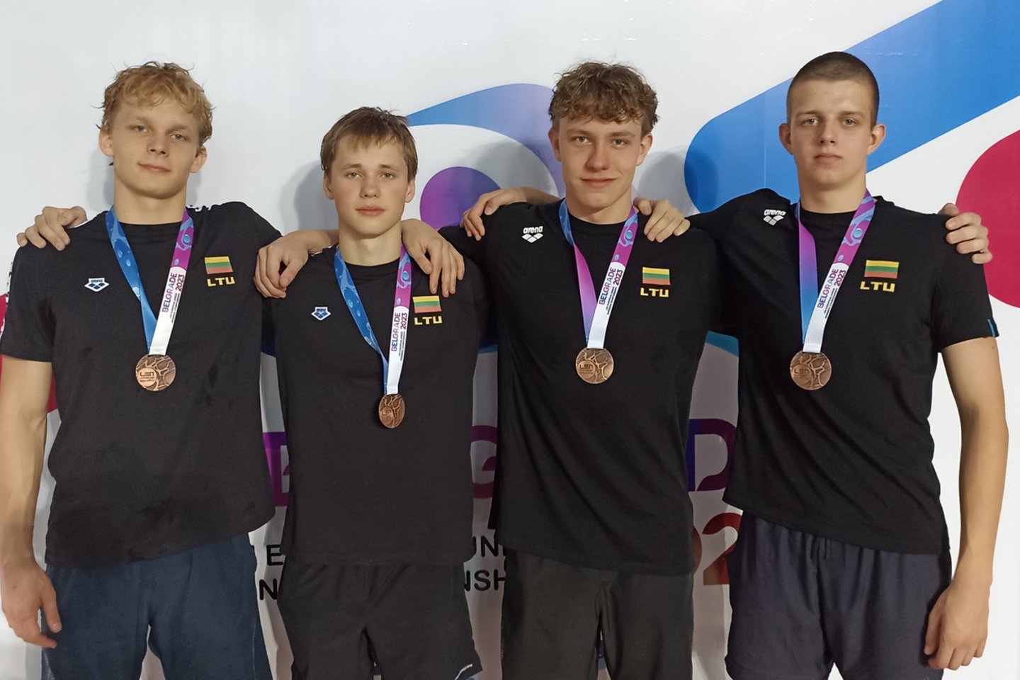 Bronza estafetėje 4 po 100 m laisvuoju stiliumi pasipuošė Lietuvos vaikinų komanda. 17-metis Kristupas Trepočka, 18-metis Kiril Stepanov, 14-metis Tajus Juška ir 18-metis Rokas Jazdauskas finišavo per 3 min. 20,53 sek. ir nusileido tik Vengrijos (3:19.39) ir Italijos (3:17.87) ketvertams.