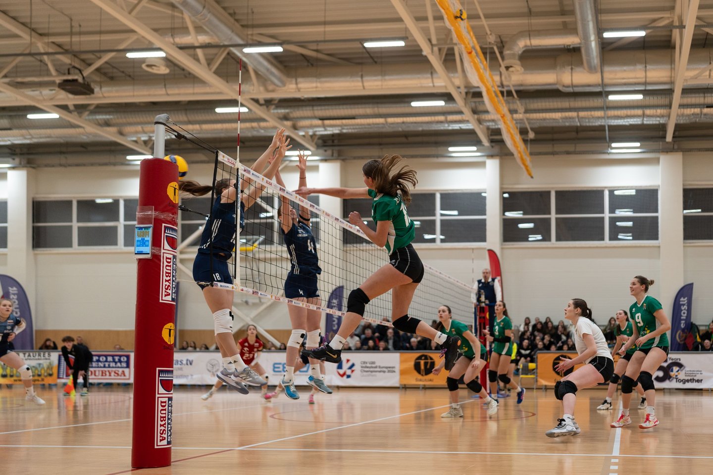 Jau pirmosiose rungtynėse Jolitos Kontvainienės treniruojamos lietuvės turėjo itin rimtą išbandymą – akistatą su viena stipriausių Europos komandų bei šio turnyro favorite Lenkijos komanda. Staigmenos mūsiškėms pateikti nepavyko – Lenkijos tinklininkės šventė pergalę 3-0 (25:17, 25:13, 25:16).