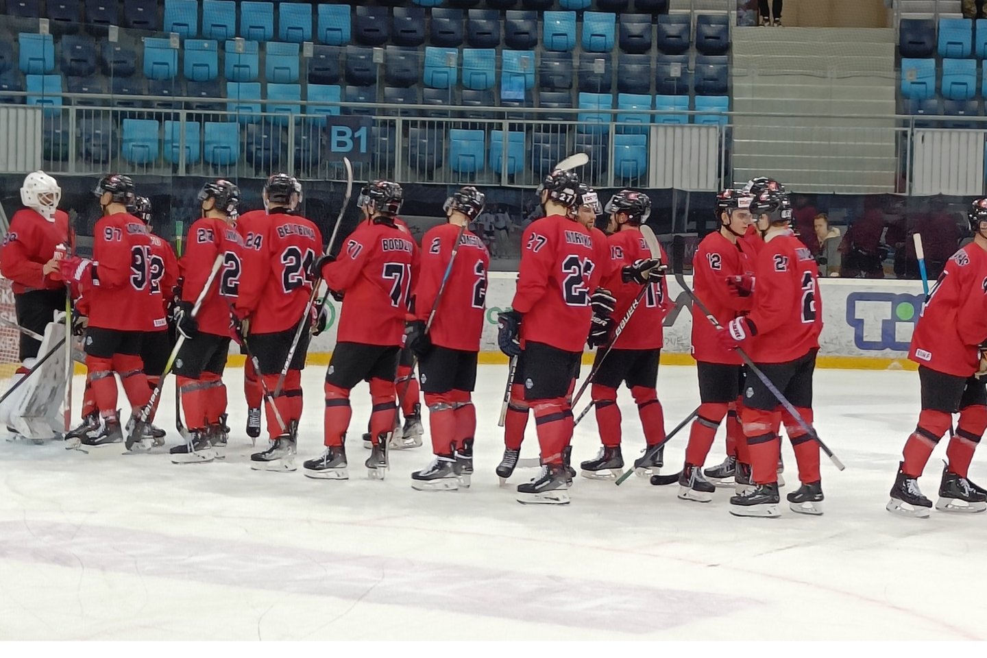 Pirmajame kėlinyje dažnai oponentus prasižengti privertę lietuviai kėlinio viduryje išnaudojo kiekybinę persvarą. Greitoje atakoje M. Kaleinikovas nugabeno ritulį netoli vartų ir jį perdavė Eimantui Noreikai, kuris padvigubino lietuvių pranašumą (10:28, rez. perd. M. Kaleinikovas, Paulius Gintautas).