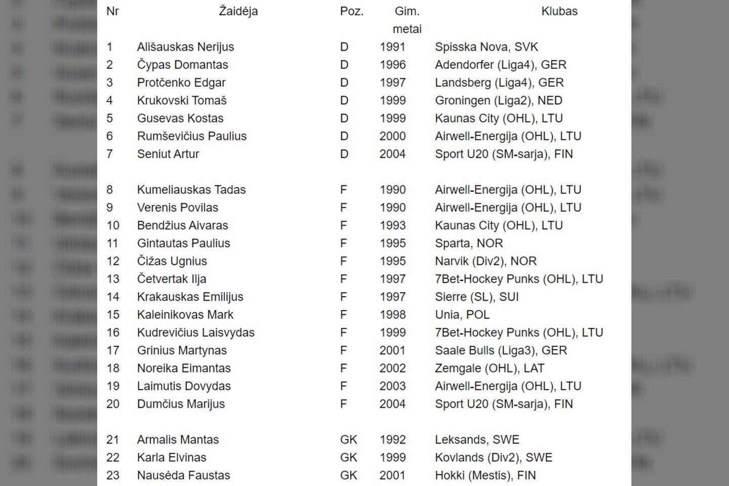 Rinktinėje šiemet išvysime ir ne vieną sugrįžimą. Po kelių metų pertraukos vėl išvysime Tadą Kumeliauską ir Povilą Verenį, kurių sprendimu itin džiaugėsi rinktinės trenerių štabas. Pasak R. Pasco, patyrę žaidėjai atliks svarbią rolę bei leis geriau paskirstyti užduotis kitiems ledo ritulininkams.