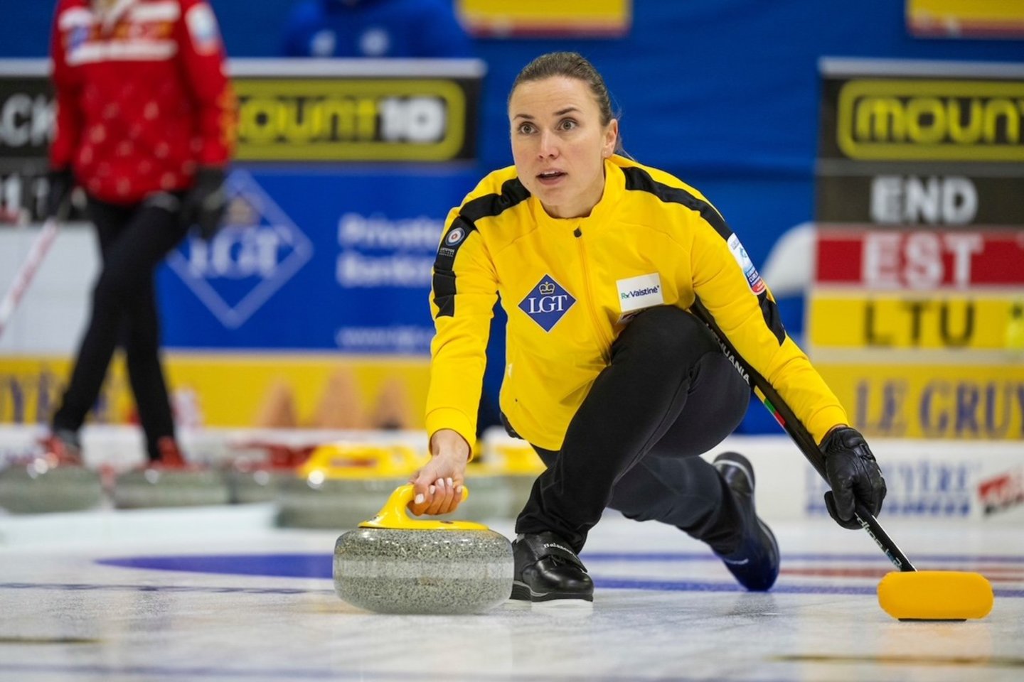 Vėliau Lietuvos rinktinė stojo į kovą su Europos čempionių titulą ginančiomis Šveicarijos akmenslydininkėmis. Po gražios ir atkaklios kovos lietuvės varžovėms pralaimėjo minimaliu skirtumu 7:8.