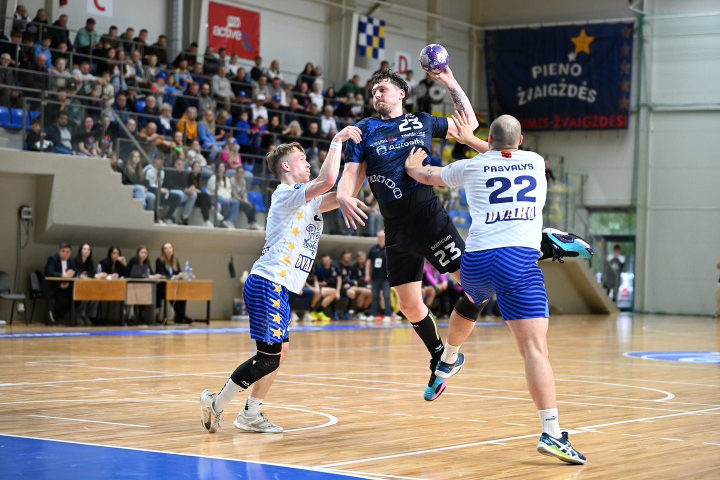 Reguliariojo sezono nugalėtojai Klaipėdos „Dragūno“ rankininkai sensacingai į finalą patekusią LRL naujokę Pasvalio „Pieno žvaigždžių“ komandą užtikrintai nugalėjo ir svečiuose.