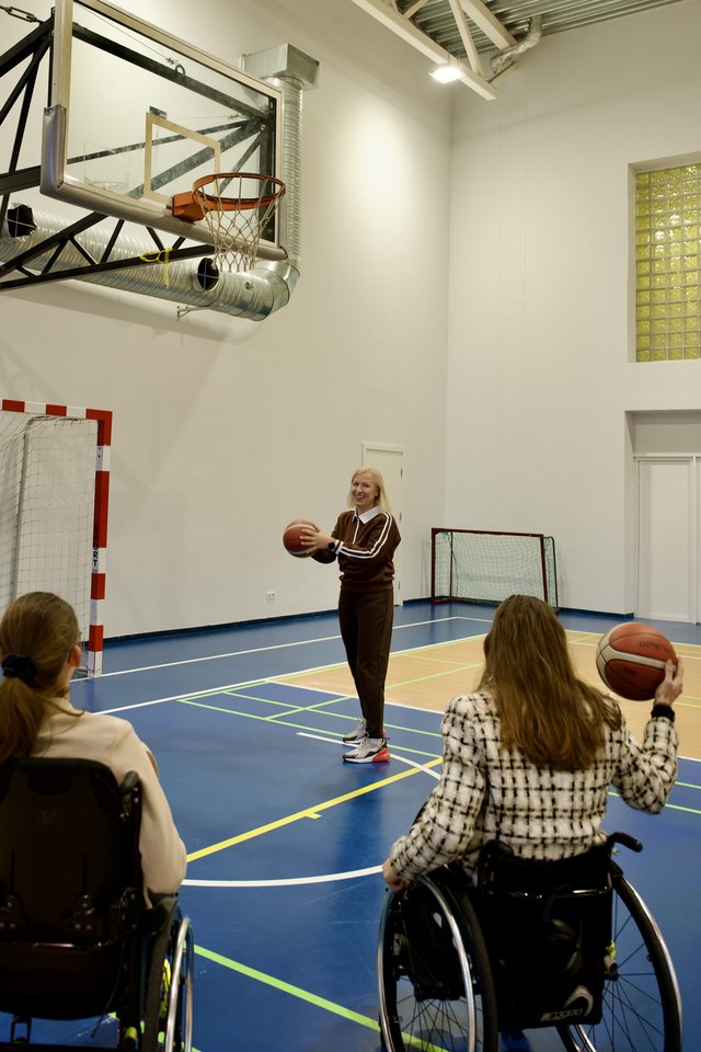 Su mokytoja susitikome Palaimintojo Teofilijaus Matuliono gimnazijoje, kuri buvo pirmoji, atvėrusi duris specialiųjų ugdymosi poreikių turintiems vaikams. Nenuostabu, kad šią mokyklą baigė ir ne vienas paraatletas, pavyzdžiui, lengvaatlečiai Deividas Podobajevas, seserys Viktorija ir Kotryna Žižmaraitės. Apie įtraukias fizinio lavinimo pamokas kartu kalbamės su jomis, dar visai neseniai grįžusiomis iš pasaulio žmonių su negalia lengvosios atletikos čempionato Indijoje. Abi sportininkių keliu einančios seserys, apsikabina buvusią savo mokytoją ir nevynioja žodžių į vatą.