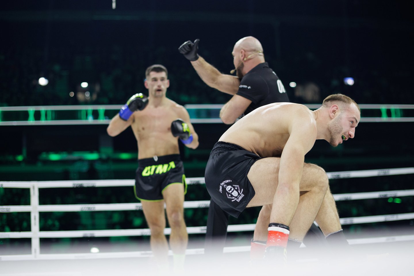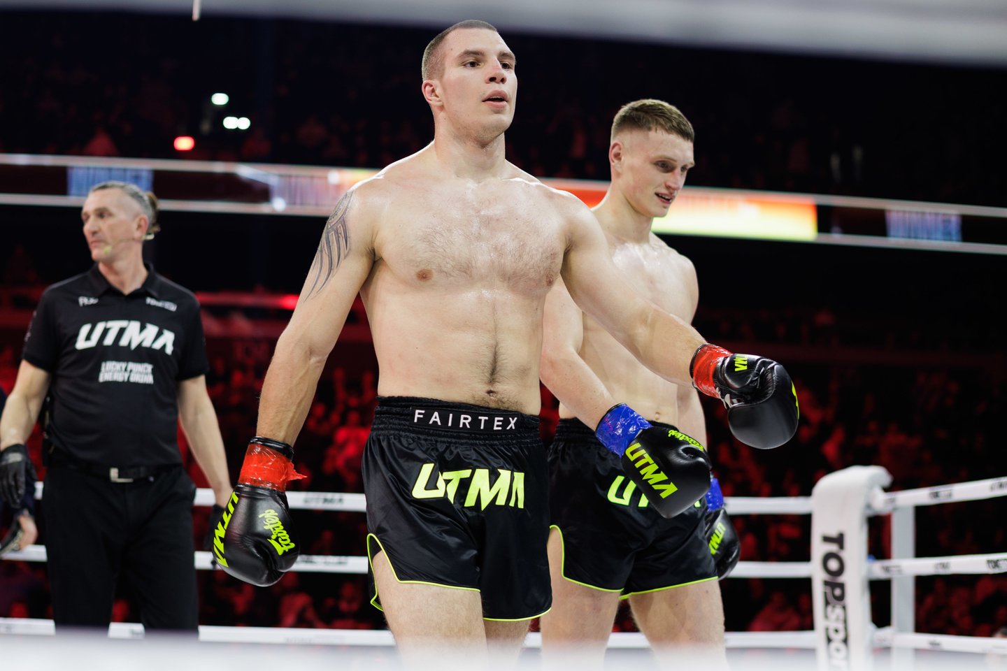 UTMA organizacijoje debiutavęs Modestas Žmuidina pateikė staigmeną. Visą karjerą bokse praleidęs kovotojas per minutę laiko kelis kartus paguldė kikbokso asą Artūrą Brižinską. Teisėjai pastebėjus, jog A.Brižinskas nesugeba stabiliai pastovėti ant ringo nutraukė kovą ir paskelbė M.Žmuidinos pergalę. Tiesa, abu kovotojai sutarė susitikti dar kartą.