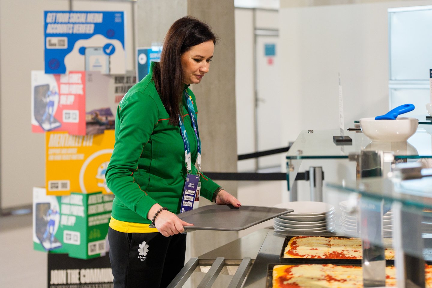 Susitikdama su Lietuvos olimpiečiais ji taip pat pavaikščiojo po Milano olimpinį kaimelį ir ten net papietavo.