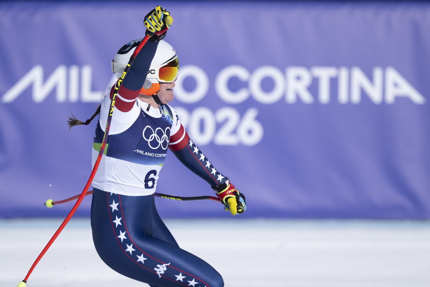 Daugiau kaip 20 minučių varžybos buvo atidėtos, tačiau po to tęsėsi ir čempione tapo L.Vonn draugė ir kolegė amerikietė Breezy Johnson. Antrąją vietą laimėjo vokietė Emma Aicher, o trečią – italė Sofia Goggia.