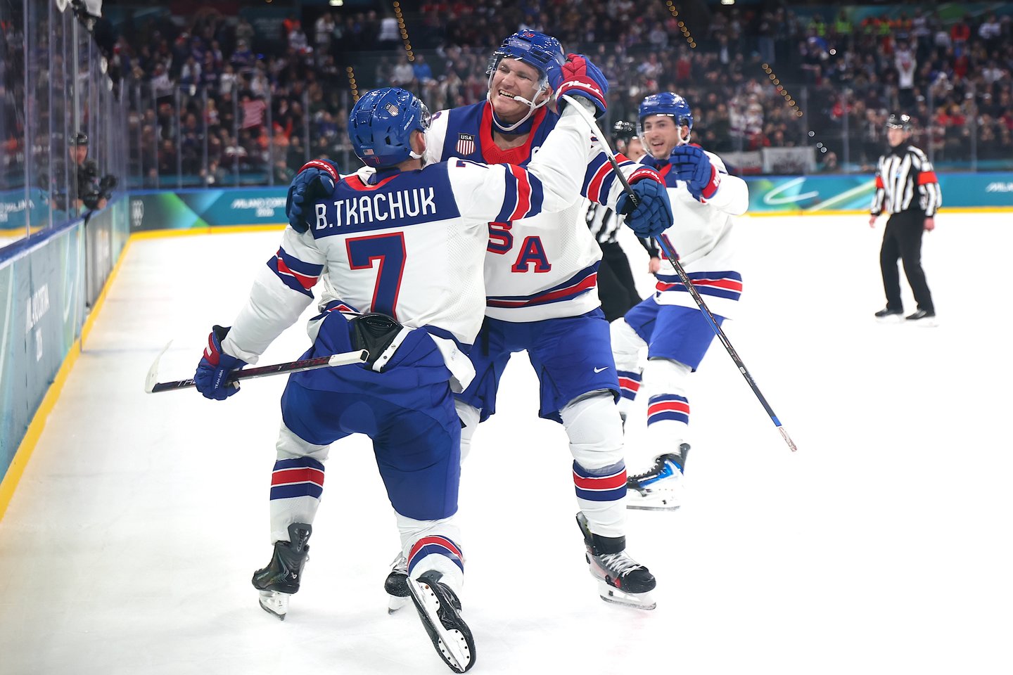Laisviau pradėję žaisti JAV ledo ritulininkai trečią įvartį 17-ąją minutę, o pasižymėjo Tage'as Thompsonas.