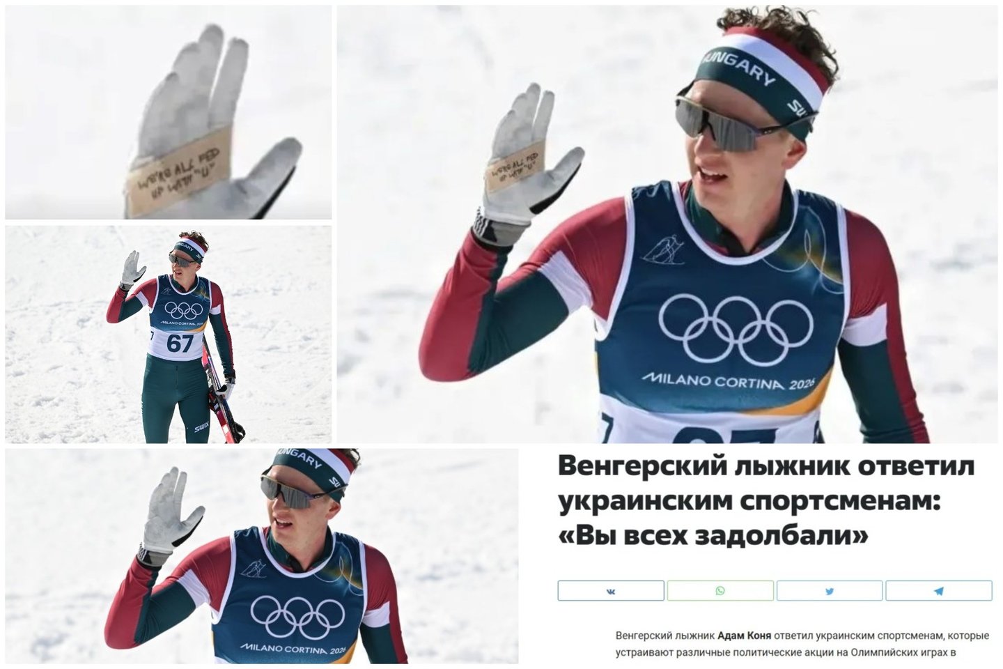 Internete kaip virusas pasklido melaginga istorija apie vengrų slidininko reakciją į Ukrainos sportininkų protestus 2026 metų Milano-Kortinos olimpinėse žaidynėse.