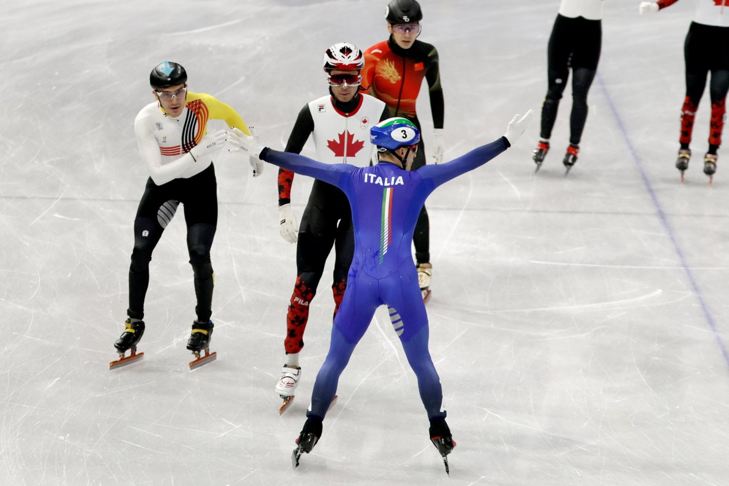 O pirmadienio vakarą Pietro pakartojo šį triuką 500 m atrankos varžybose. Po to, kai jo kvalifikacijoje varžovai krito, italas iki finišo linijos čiuožė kartu su kazachu Abzalu Azhalijevu.
