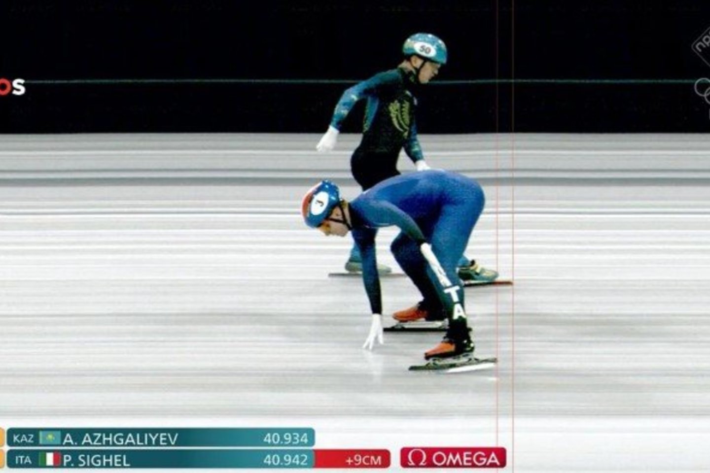 Kadangi į ketvirtfinalį iš kvalifikacijos turėjo patekti du sportininkai, P.Sighelis neturėjo ko prarasti. Jis nutarė ir vėl finišuoti atbulomis: taip jis prarado pirmąją vietą ir atsiliko nuo kazacho 0,09 sek.