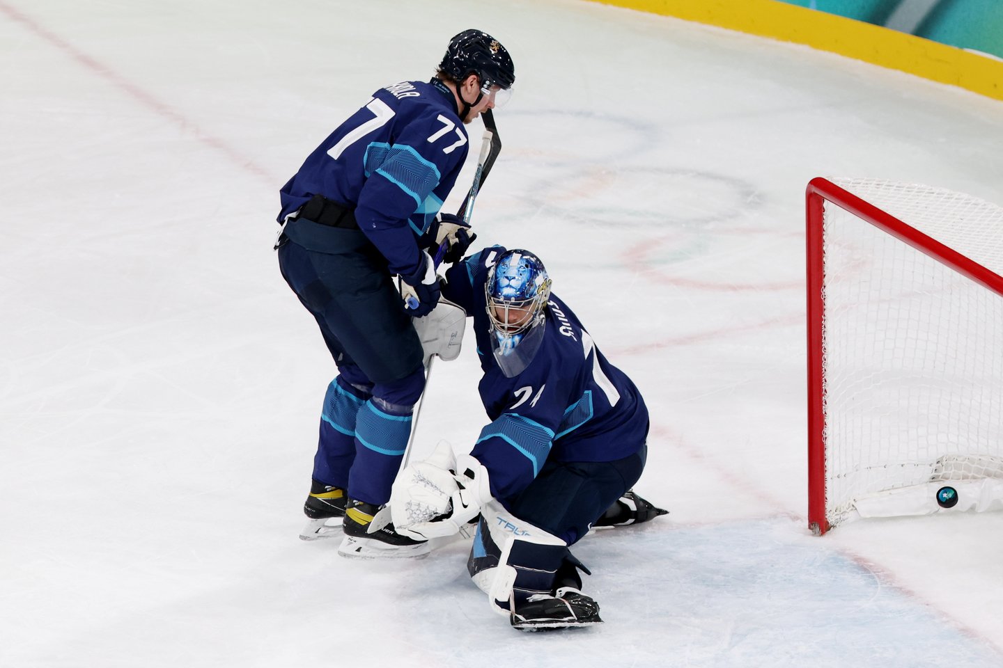 Tačiau komandos sužaidė tik 3 minutes 23 sekundes – suomių žaidėjas A.Lehkonenas gavo ritulį ties mėlyna linija, išsiveržė vienas prieš vartininką ir įmušė auksinį įvartį.