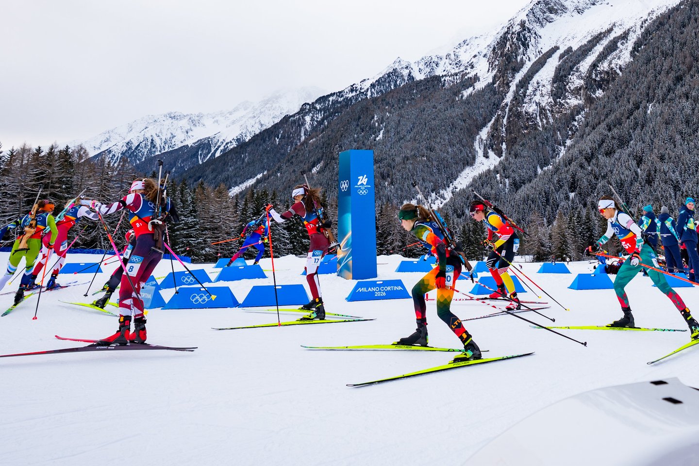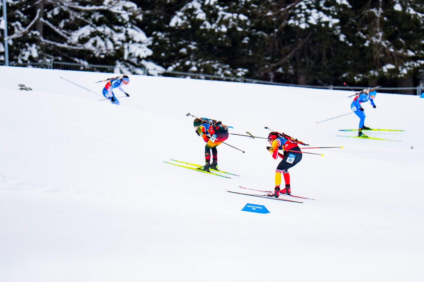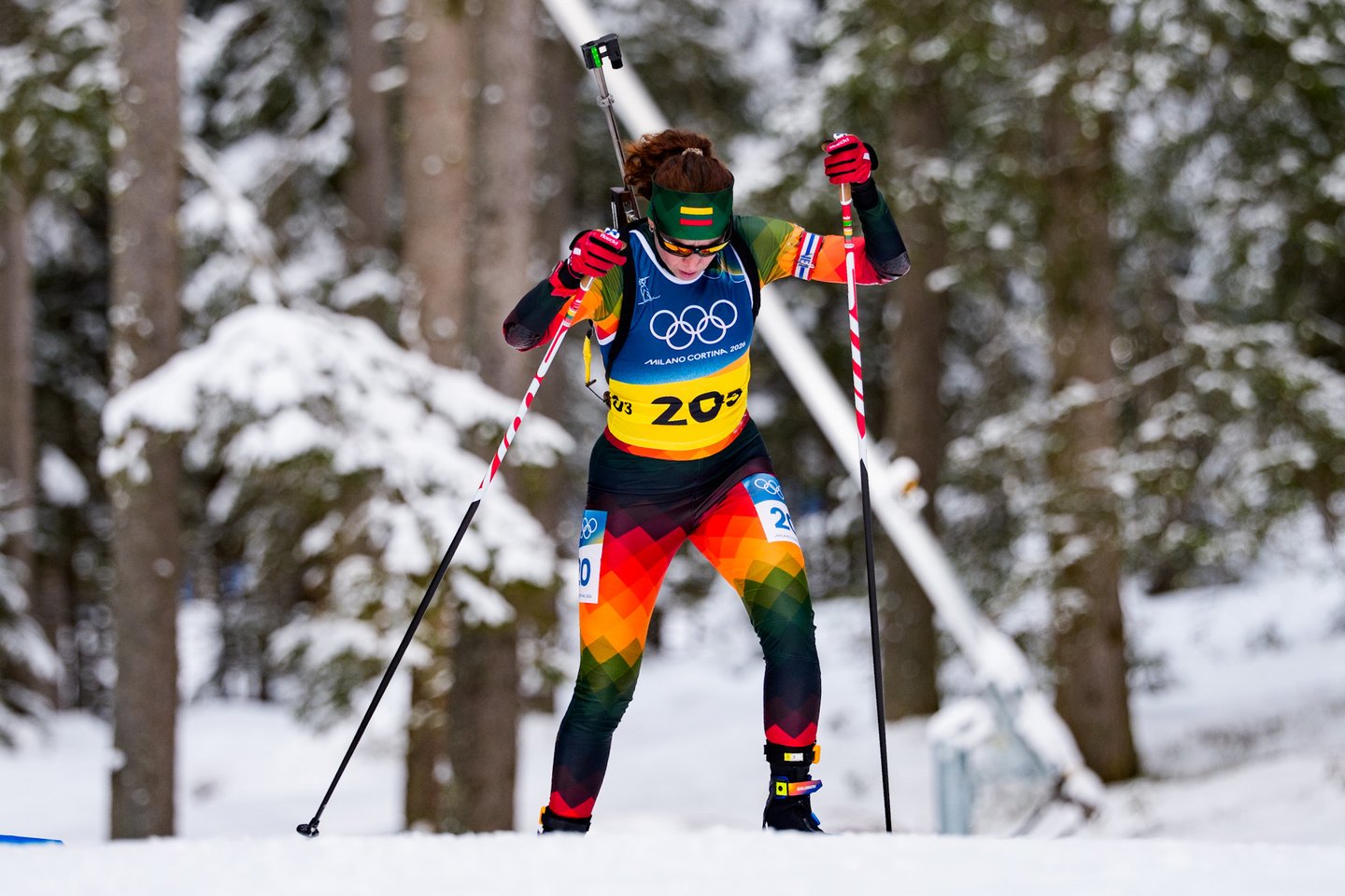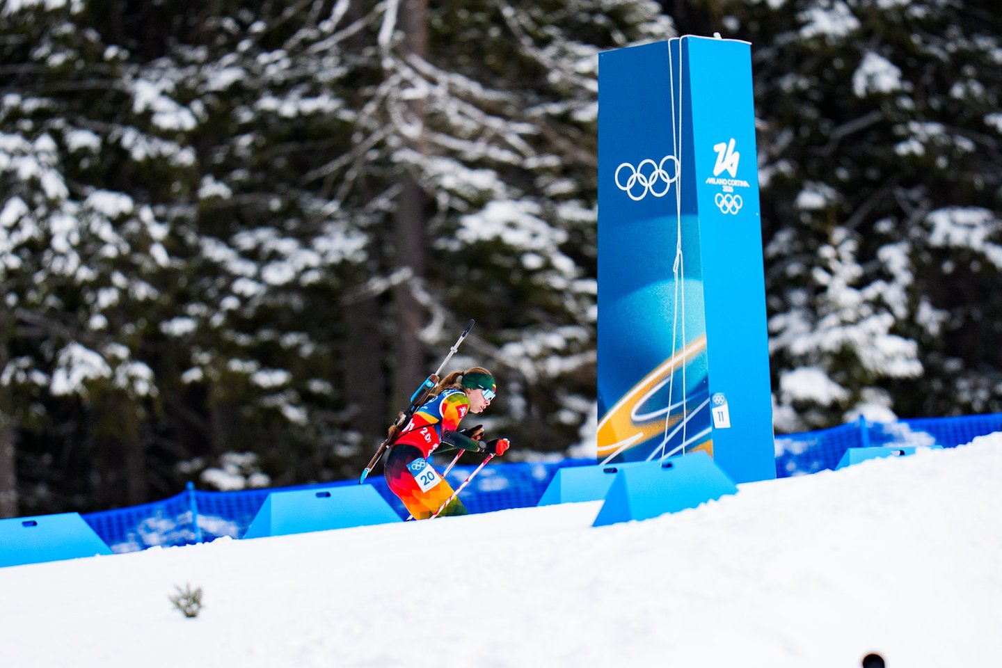 Milano ir Kortinos olimpinėse žaidynėse estafetės įtampą trečiadienį pajautė Lietuvos moterų biatlono rinktinė, kartu su dar 19 stipriausių planetos komandų kovojo 4x6 km estafetės lenktynėse. Šios varžybos pateko į mūsų šalies biatlono istoriją, nes lietuvės pirmą kartą pateko į prestižinę estafetės rungtį olimpinėse žaidynėse. tačiau mūsiškėms nepavyko nepavyko užbaigti varžybų – trečiame estafetės etape Lietuvą ratu aplenkė prancūzės ir pagal taisykles mūsiškės buvo priverstos pasitraukti iš trasos. Lietuvai estafetėje atstovavo Judita Traubaitė, Lidija Žurauskaitė ir veteranė Natalija Kočergina. Nestartavo Sara Urumova. Lietuvės užėmė paskutinę 20-ąją vietą. Auksą iškovojo Prancūzijos kvartetas – Camille Bened, Lou Jeanmonnot, Oceane Michelon ir Julia Simon.