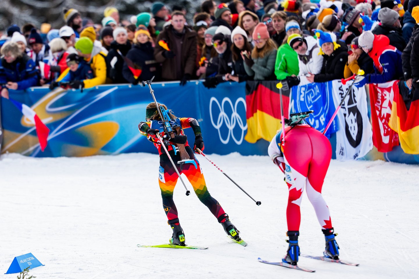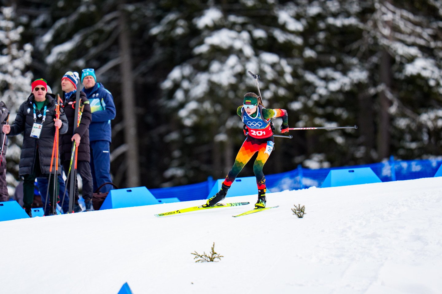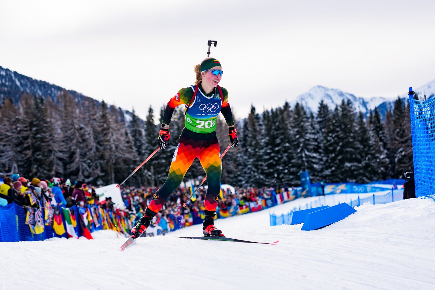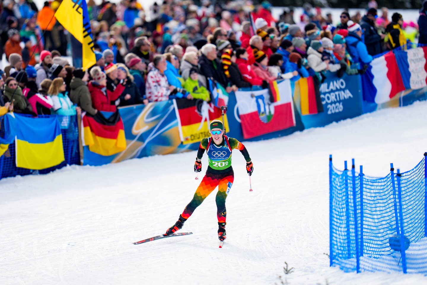 Milano ir Kortinos olimpinėse žaidynėse estafetės įtampą trečiadienį pajautė Lietuvos moterų biatlono rinktinė, kartu su dar 19 stipriausių planetos komandų kovojo 4x6 km estafetės lenktynėse. Šios varžybos pateko į mūsų šalies biatlono istoriją, nes lietuvės pirmą kartą pateko į prestižinę estafetės rungtį olimpinėse žaidynėse. tačiau mūsiškėms nepavyko nepavyko užbaigti varžybų – trečiame estafetės etape Lietuvą ratu aplenkė prancūzės ir pagal taisykles mūsiškės buvo priverstos pasitraukti iš trasos. Lietuvai estafetėje atstovavo Judita Traubaitė, Lidija Žurauskaitė ir veteranė Natalija Kočergina. Nestartavo Sara Urumova. Lietuvės užėmė paskutinę 20-ąją vietą. Auksą iškovojo Prancūzijos kvartetas – Camille Bened, Lou Jeanmonnot, Oceane Michelon ir Julia Simon.