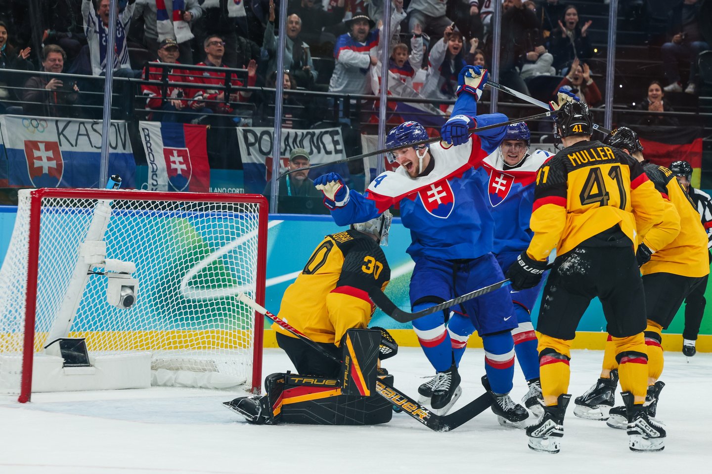 Nemažai NHL žaidėjų turėjusi Vokietijos ekipa nesurado jokių priešnuodžių kovoje su azarto pagautais slovakais. Pastarieji pakartojo 2022 m. Pekino olimpiados sėkmę, kai ketvirtfinalyje vokiečius paguldė 4:0.