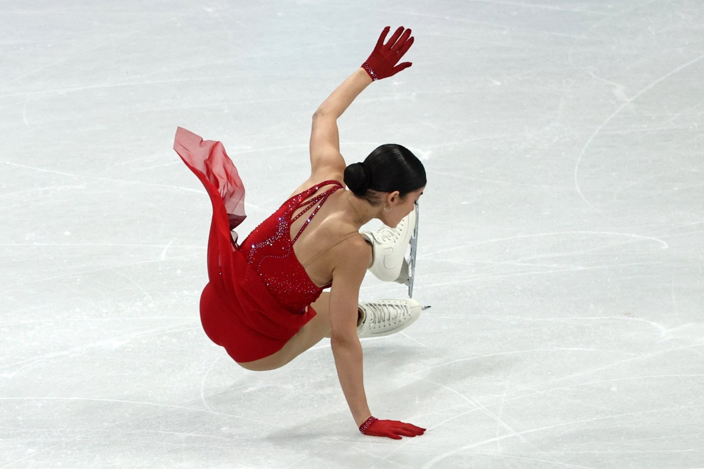 Kaip „neutrali“ atletė pasirodžiusi 18-metė rusė jau savo šokio pradžioje tėškėsi ant ledo ir taip nubraukė viltis pakovoti dėl apdovanojimų.