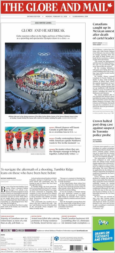 „Širdgėla ir sielvartas“, – kokie jausmai po sekmadienį patirto pralaimėjimo užplūdo visą Kanadą, pirmajame puslapyje atskleidė „Toronto Star“.