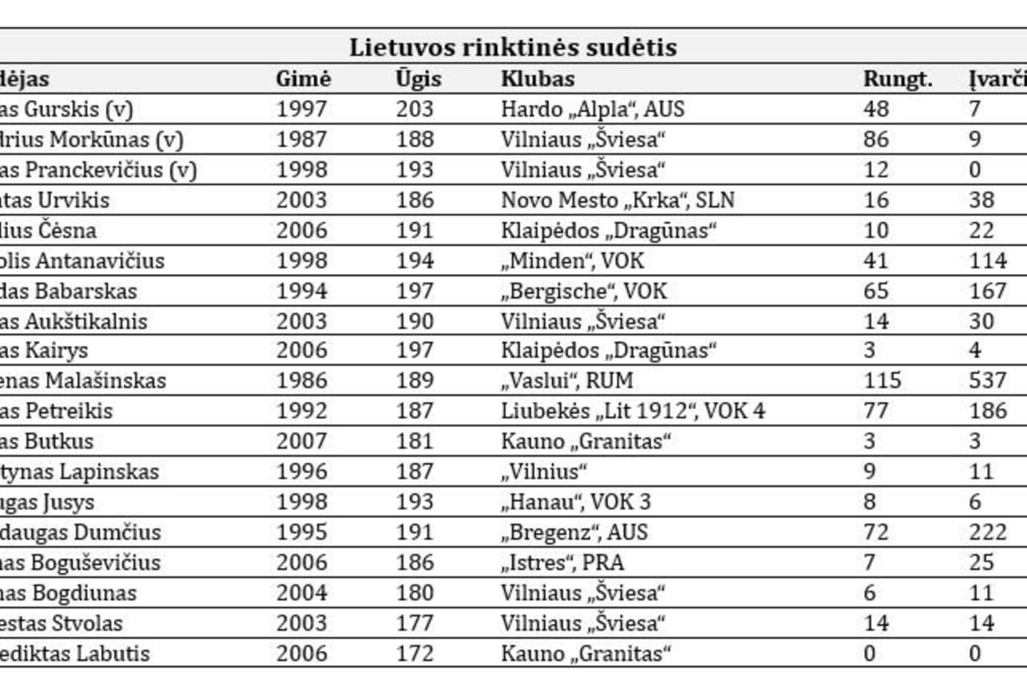 Lietuvos rinktinės treneris Gintaras Savukynas į trumpą stovyklą prieš atrankos rungtynes pakvietė 19 rankininkų. Devyni žaidėjai atvyko iš užsienio klubų.