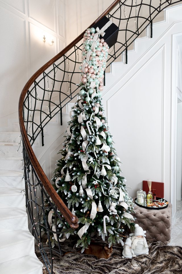 Negana to, susidūriau su kita dilema – mūsų nusipirkta eglė vis tiek nebuvo tokio dydžio, kokio man reikėjo. Tad turėjau ją ne tik papuošti, bet ir paaukštinti – taip atsirado nuo laiptų krašto krintanti žaisliukų dėžė.