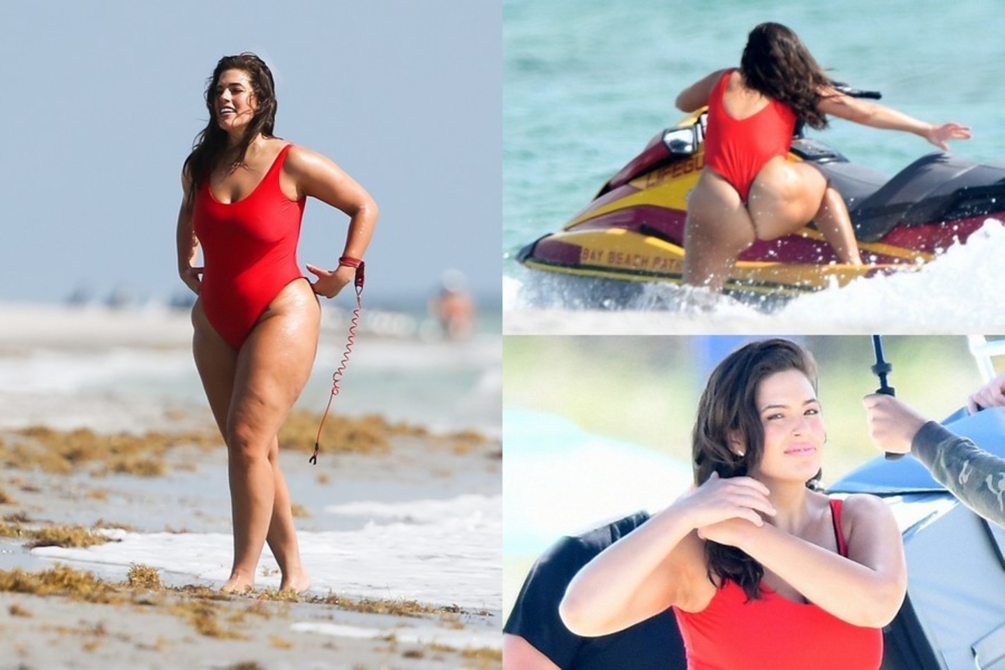 Pasipuošusi raudonu vientisu maudymosi kostiumėliu, gražuolė nutarė paplaukioti vandens motociklu. Su kūno linijas paryškinančiu maudymuku Ashley puikiai jautėsi – tai matyti ir iš jos judesių. Be jokių kompleksų, su šypsena veide, ji staipėsi prieš fotografus.