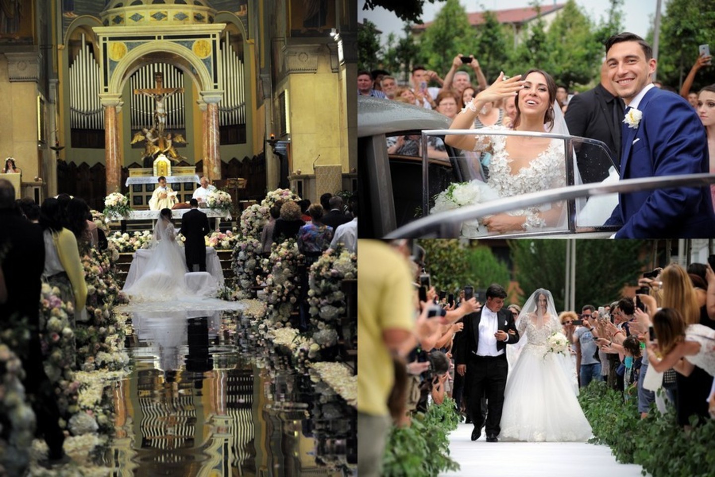 Vestuvių ceremonija vyko Italijoje, o pasveikinti jaunavedžių susirinko gausus būrys svečių tarp kurių – futbolininkai su antrosiomis pusėmis.
