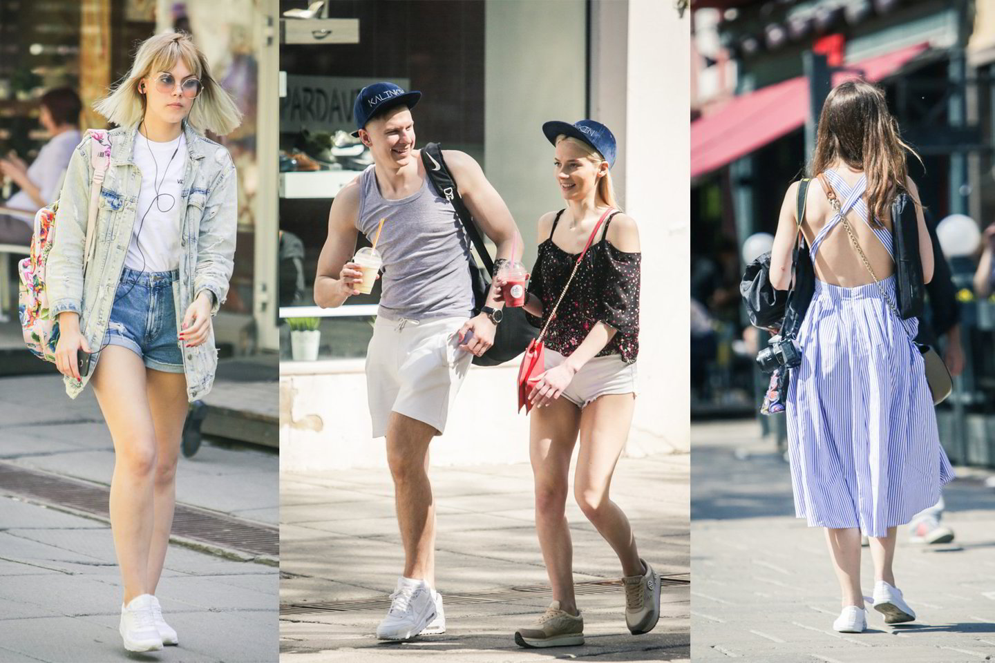 Netrūko merginų ir moterų, kurios vilkėjo lengvomis spalvotomis vasarinėmis suknelėmis, segėjo lengvus sijonus ar mūvėjo plėšytus džinsus, prie kurių derino marškinėlius daugiausia trumpomis rankovėmis. Kaunietės daugiausia avėjo sportinius batelius ar bekulnes basutes.