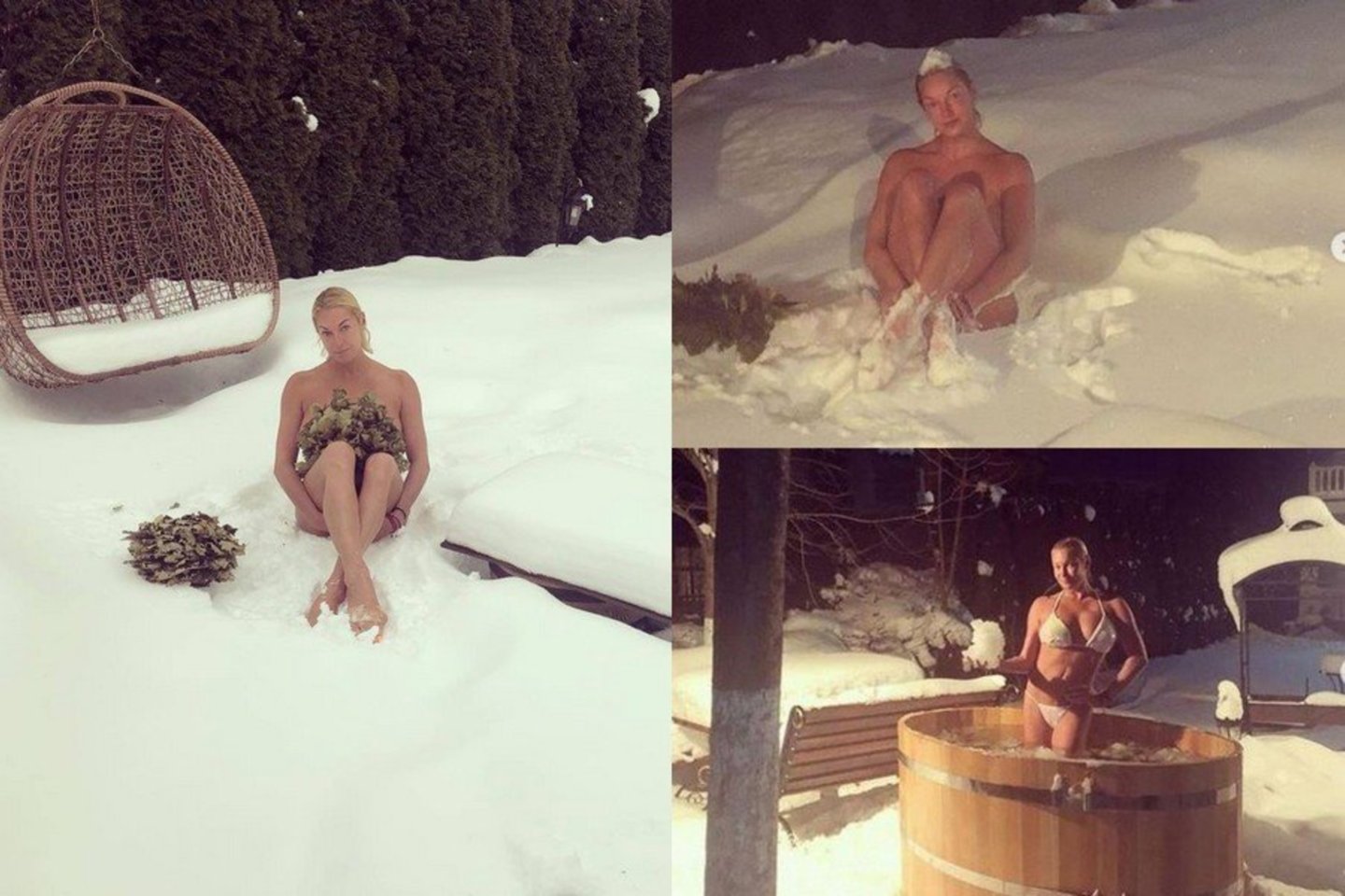 „Nepergyvenkite, kad aš sušalsiu. Aš grūdinuosi nuo 13 metų. O jūs galėtumėte pasinerti į sniegą? Stebėkite mane ir pozityviai gyvenkite. Su manimi nenuobodu“, – rašė ji.